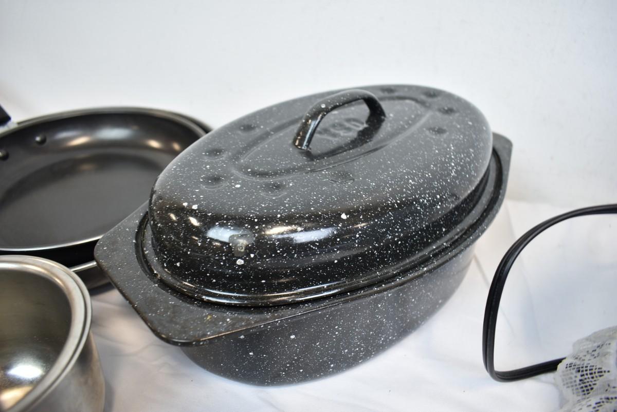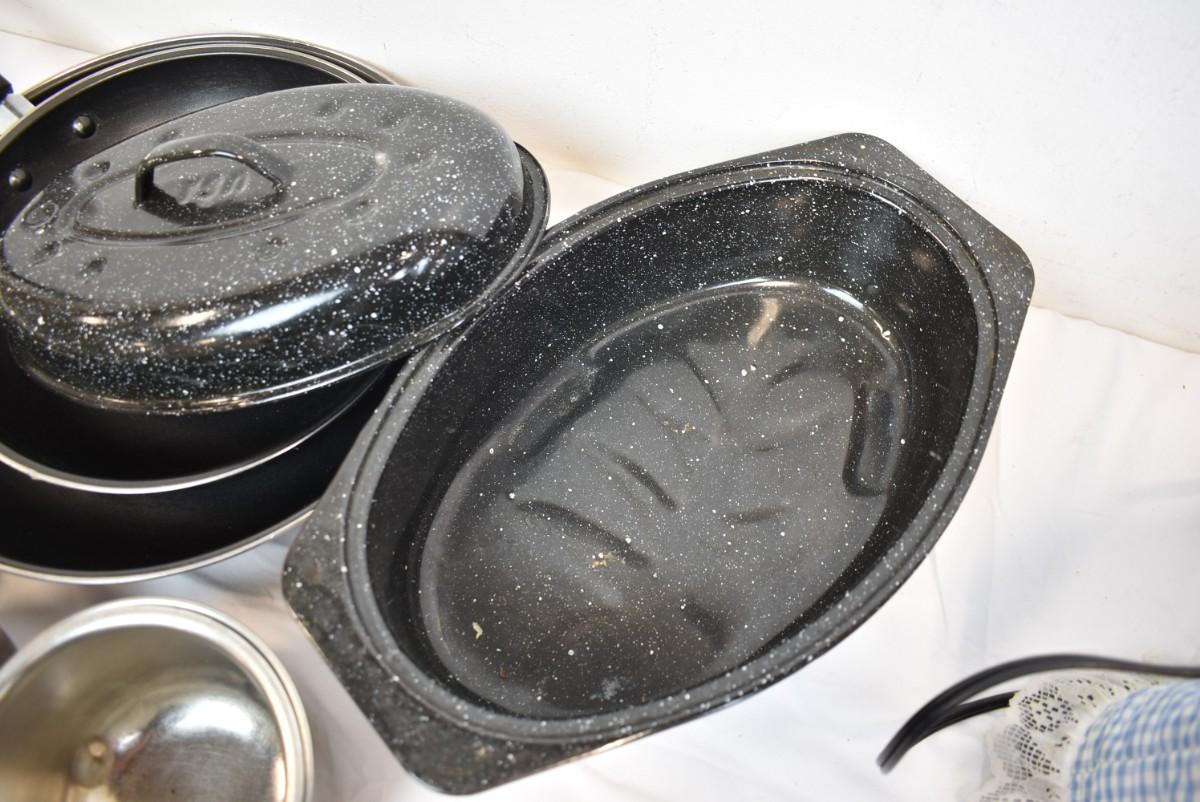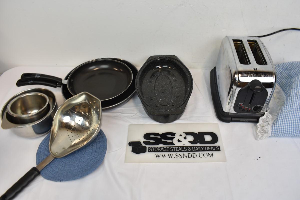 12 pc Kitchen, Toaster, Pans, Small Bowls, Hot Pads, Small Roasting Pot