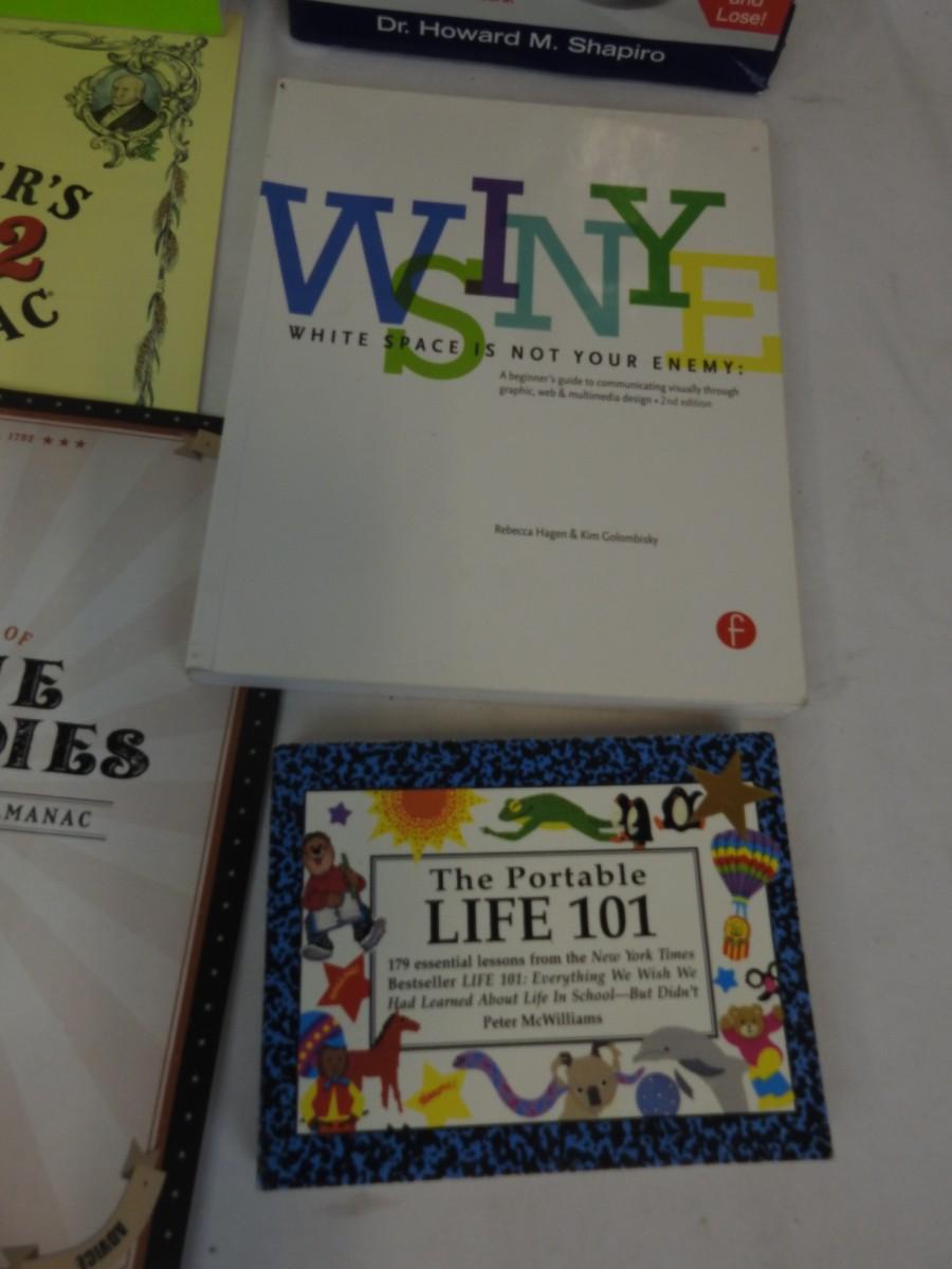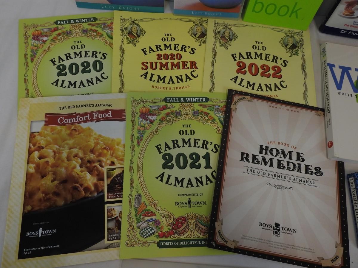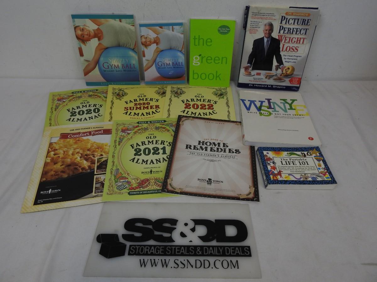 12 pc Non-Fiction Books: Farmer's Almanacs, Workout Book & DVD, Graphic Design