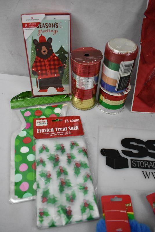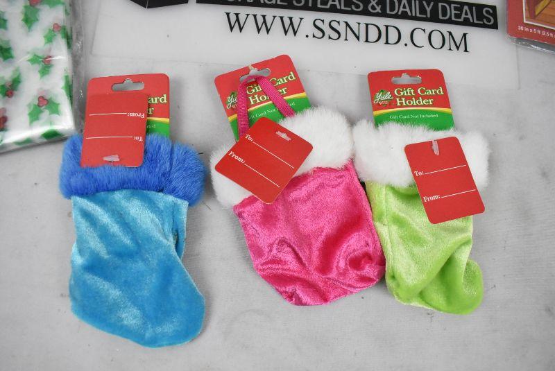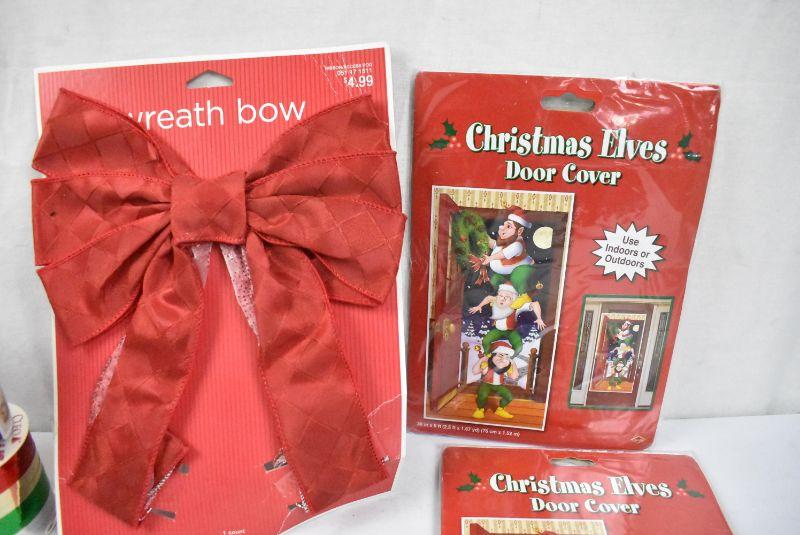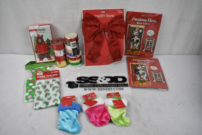 12 pc Various Christmas: Ribbon, Cards, Door Decor, Treat Sacks, etc - New