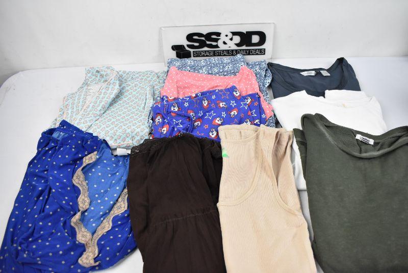 12 pc Women's Clothing Size XL: 2 pajama sets, 4 tops, 3 pajama bottoms, 1 skirt
