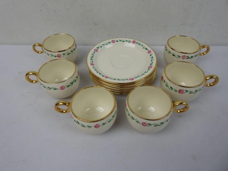 12 Piece Floral Tea Set: 6 Cups and 6 Saucers