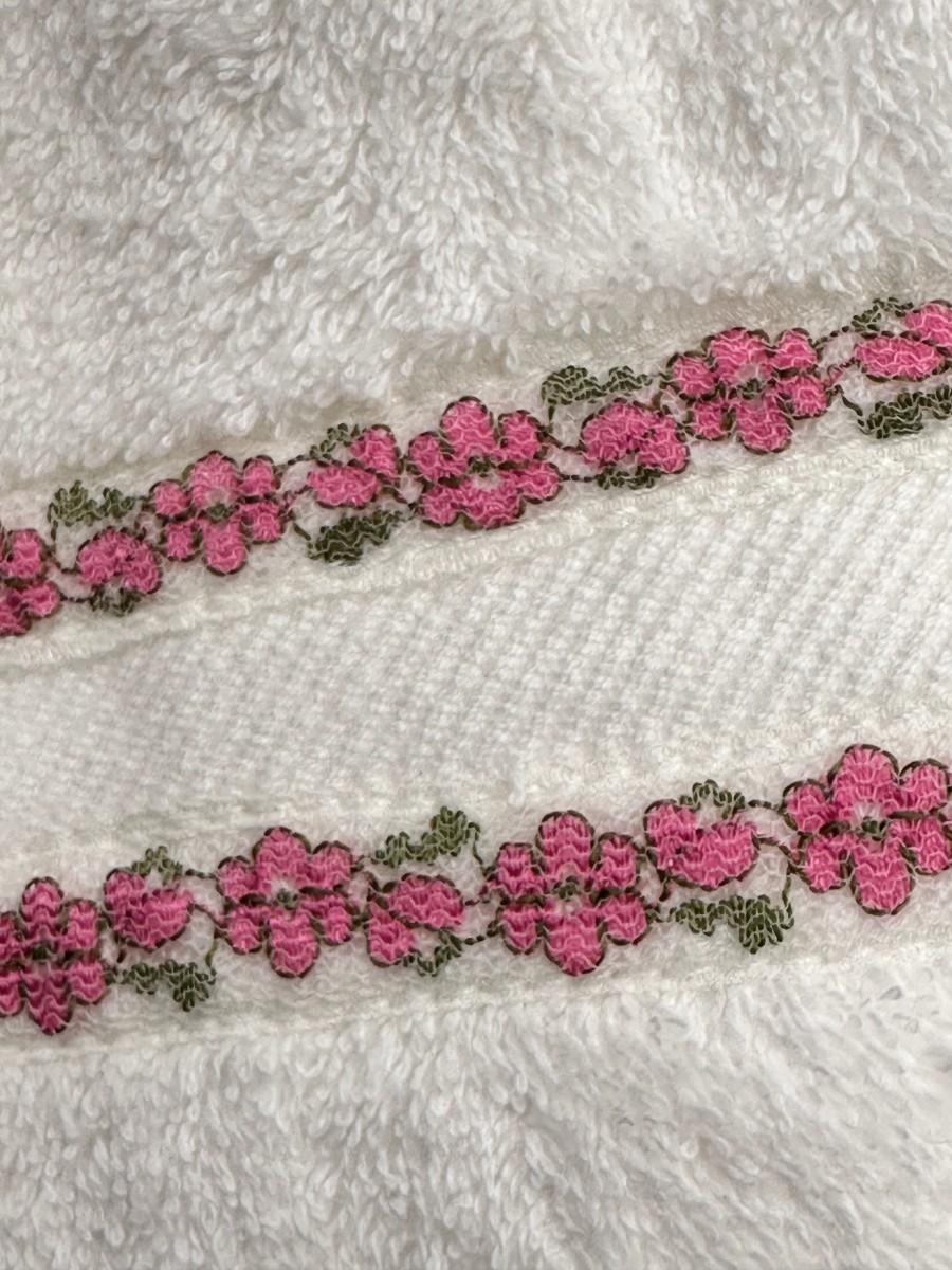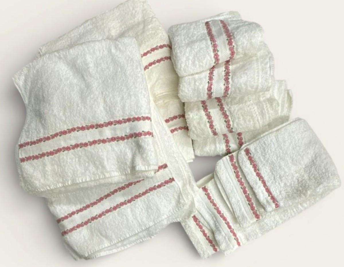 12 Piece Sears Colorburst White Cotton Vintage Bath Towel Set w Pink Flower Trim