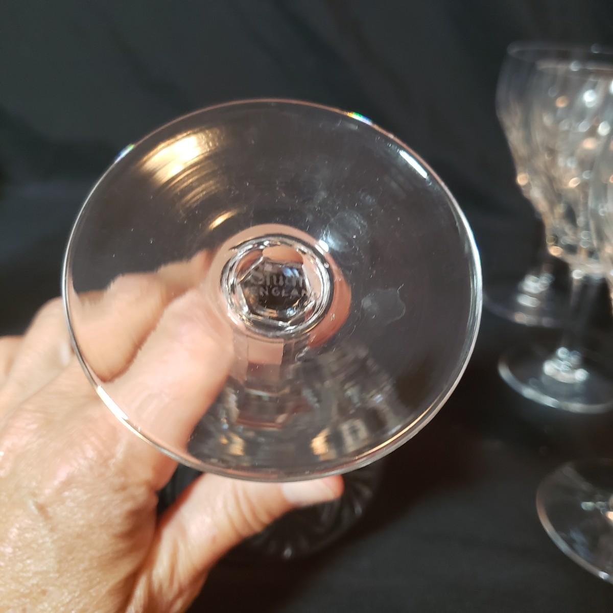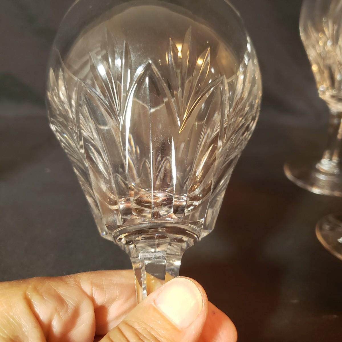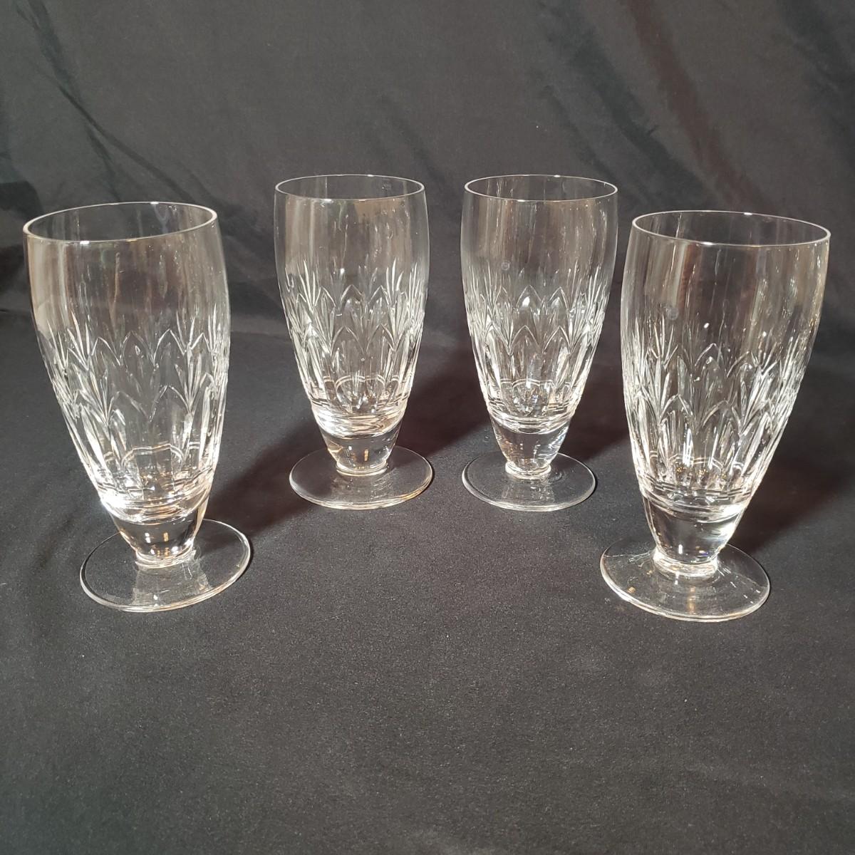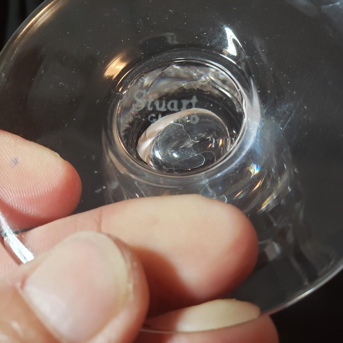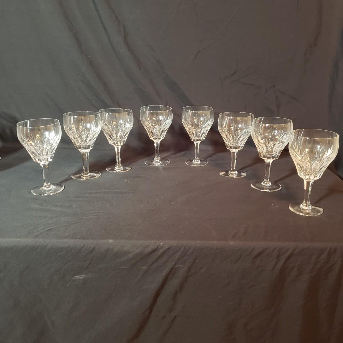 This 12 piece set includes four goblets and eight stemware. Each glass is 6.5"H. There appears to be no blemishes on the glasses. These are Stuart Crystal made in England, see pictures.