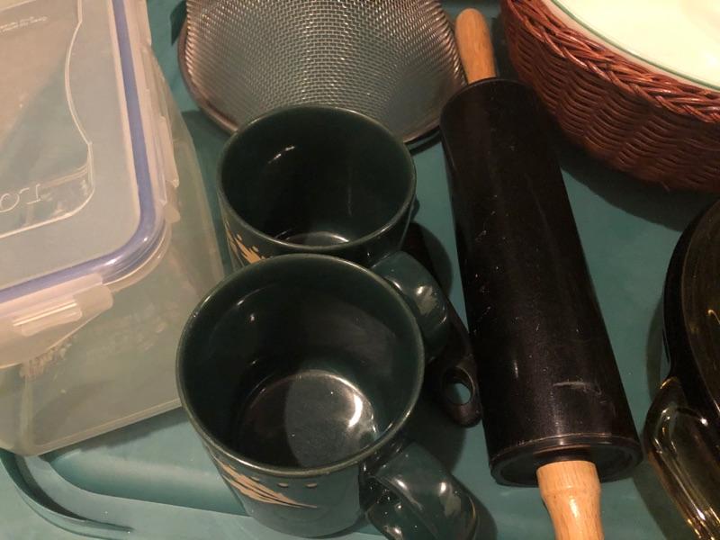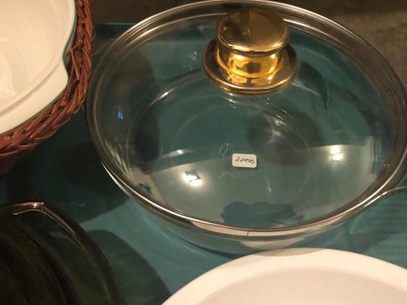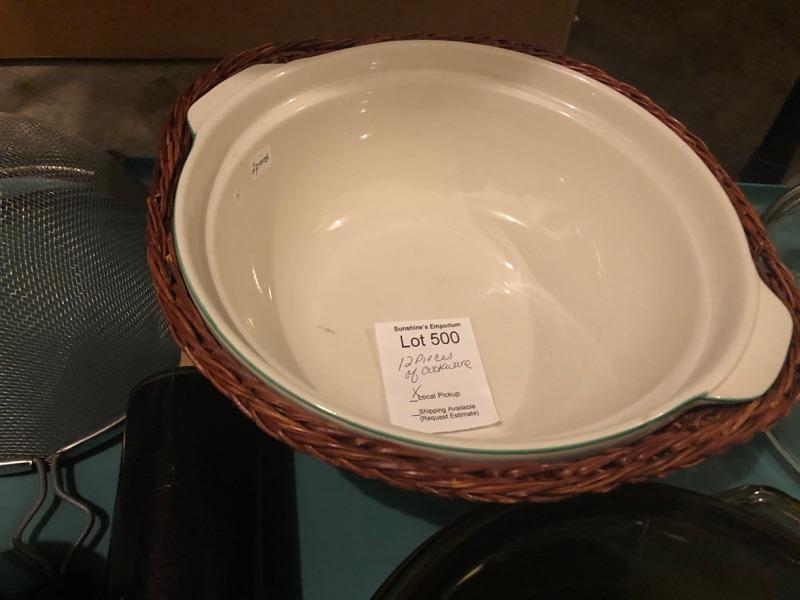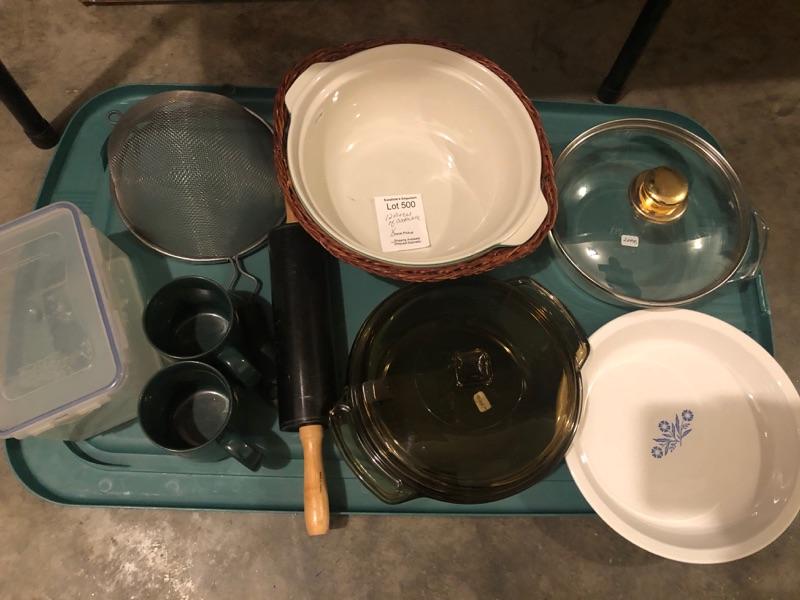 12 Pieces of Kitchen Items, Cookware - Casserole, glass bakeware with lids, strainer, roller coffee mugs storage container - Lot 500