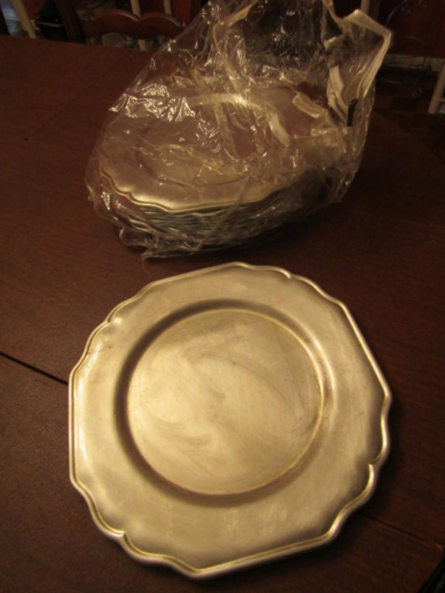12 Pieces- Plastic Silver Colored Charger Plates- Made in Italy by