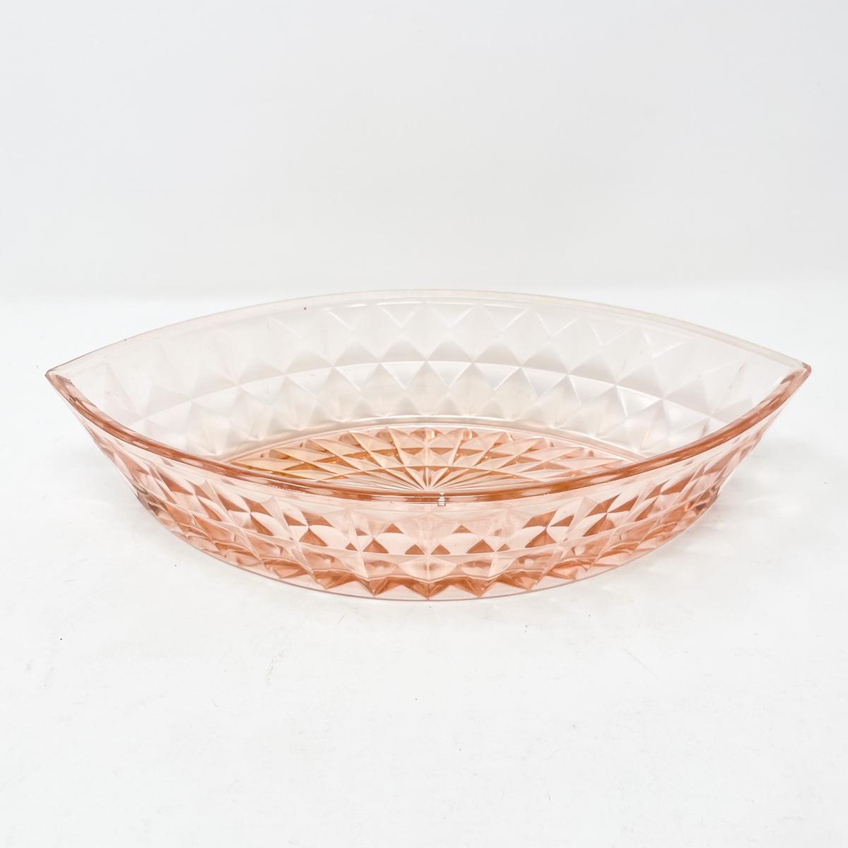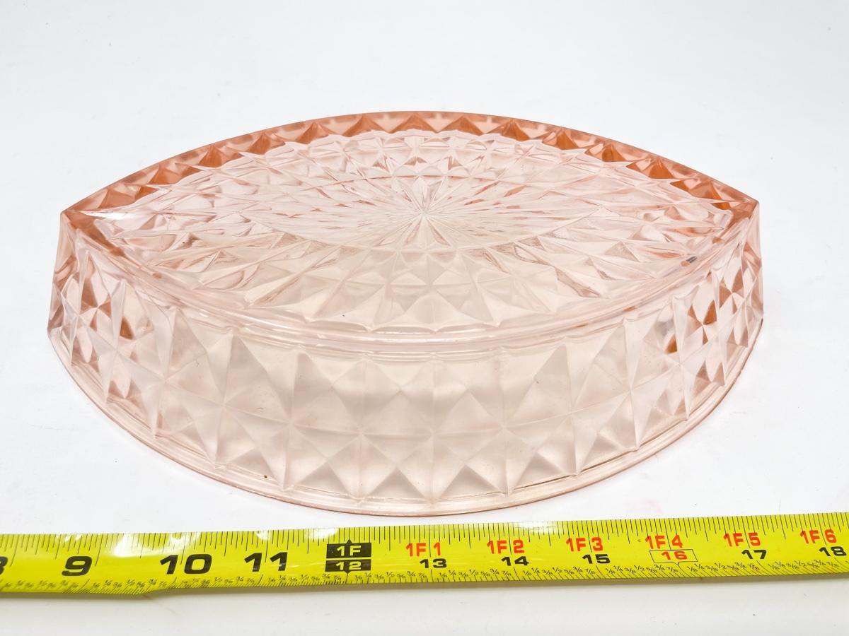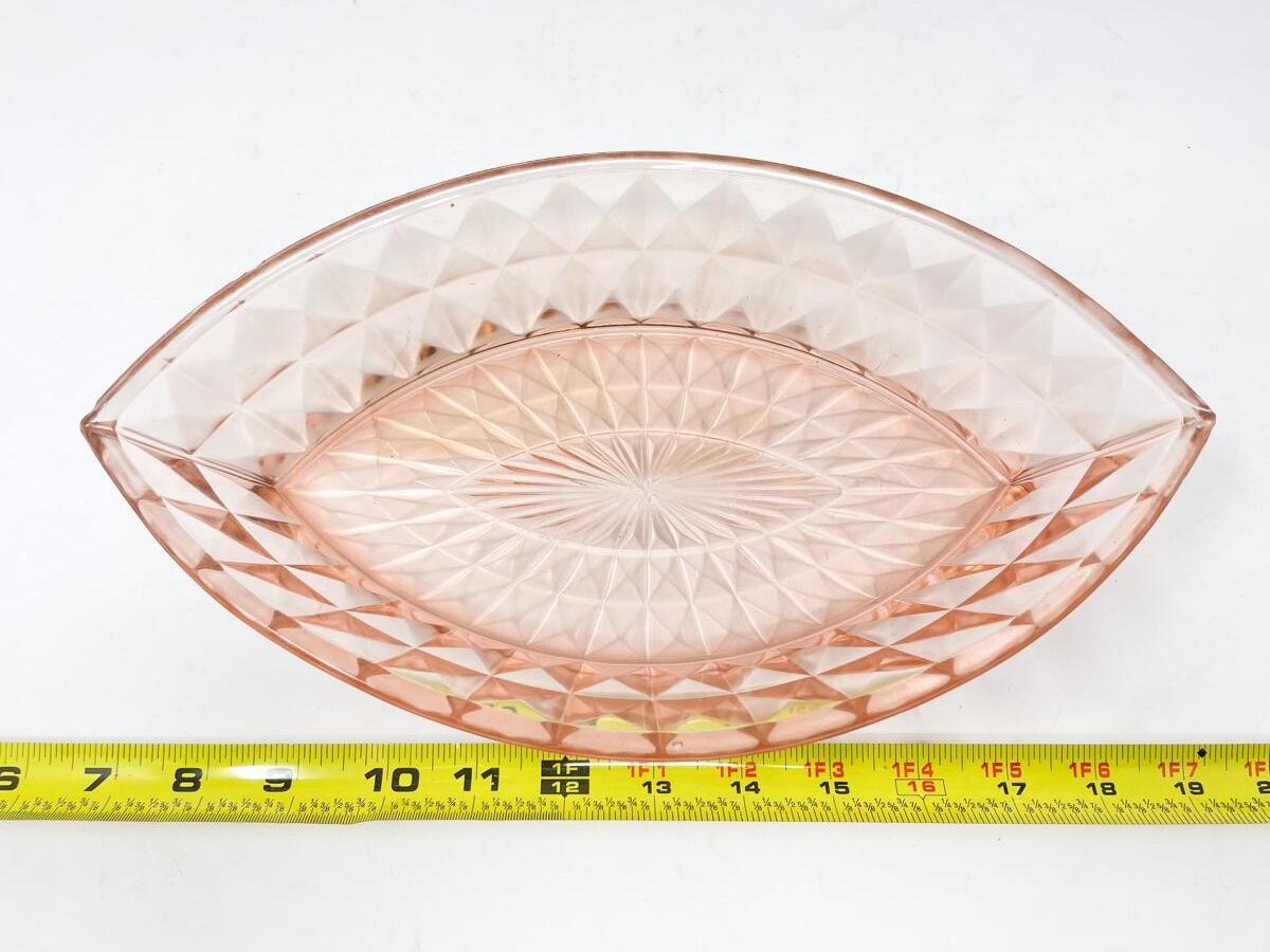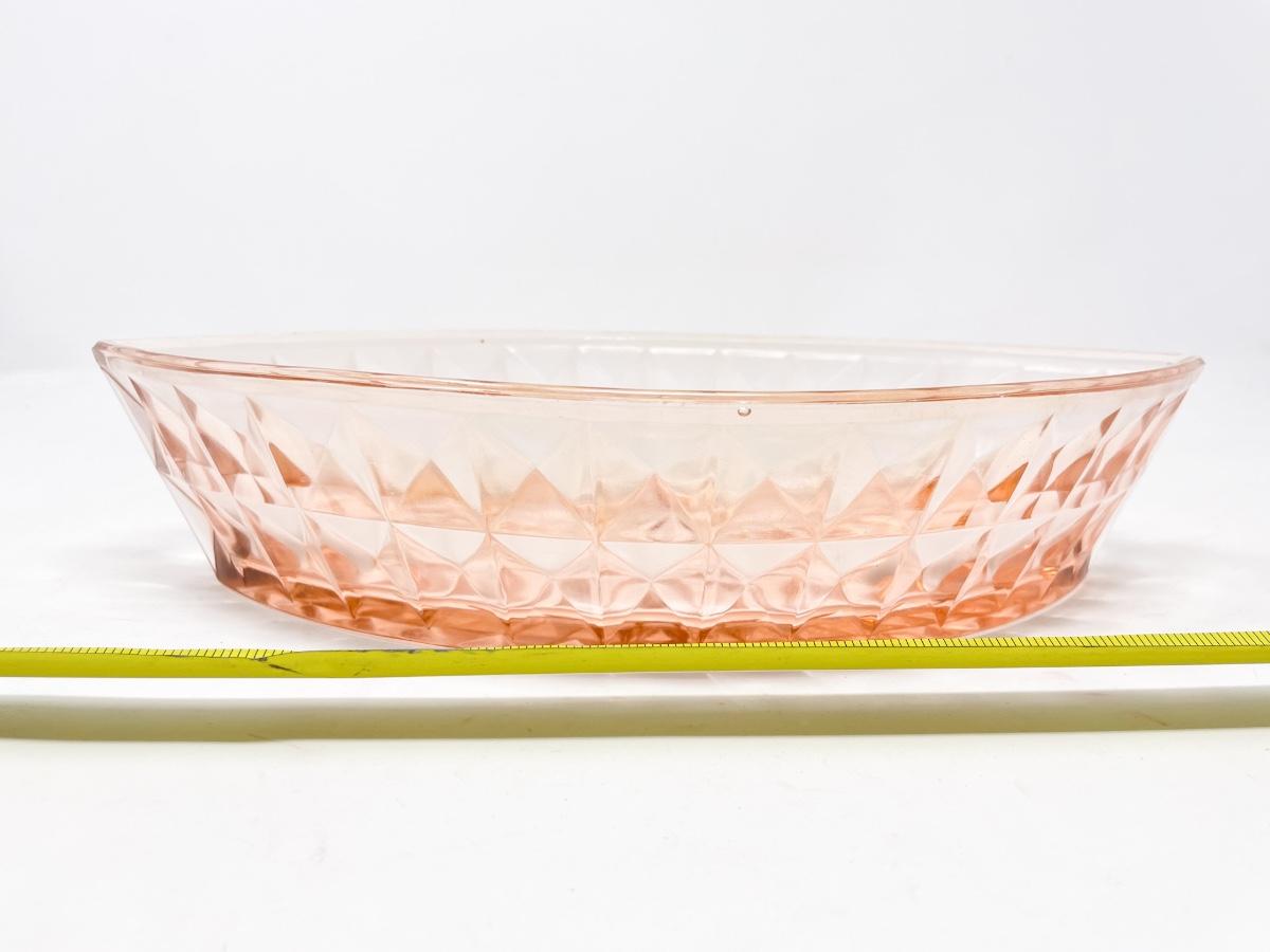 VINTAGE 12” PINK DEPRESSION GLASS DIAMOND BOAT BOWL