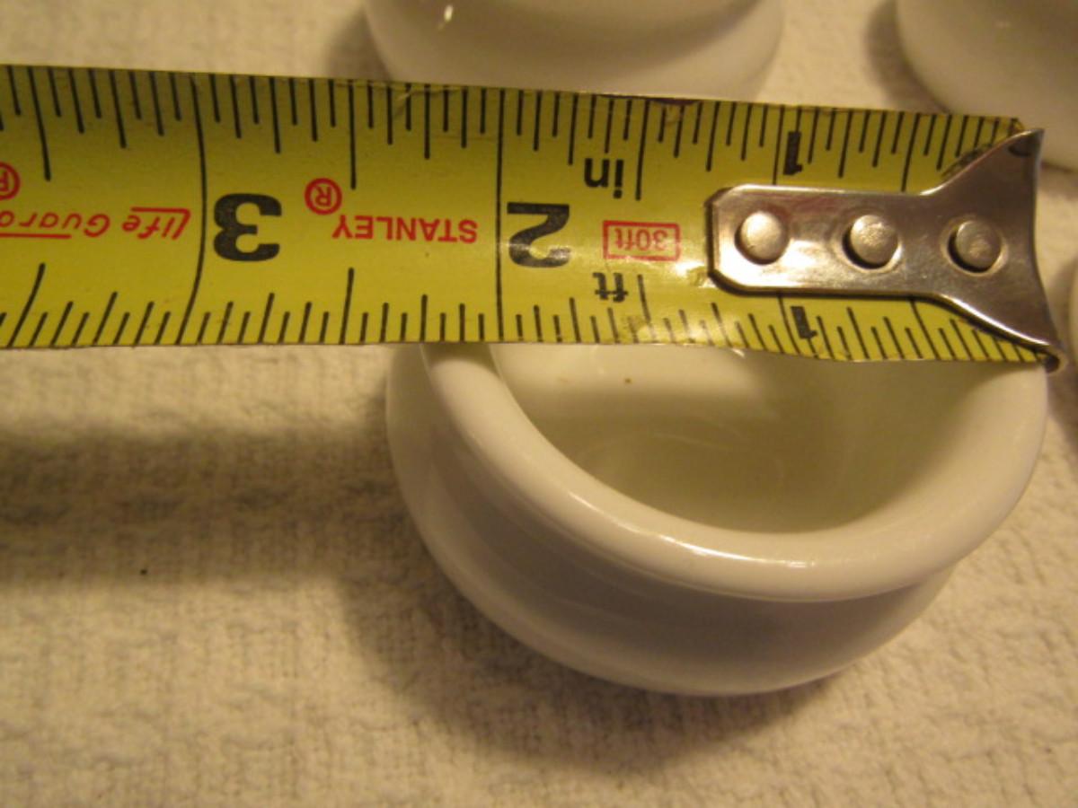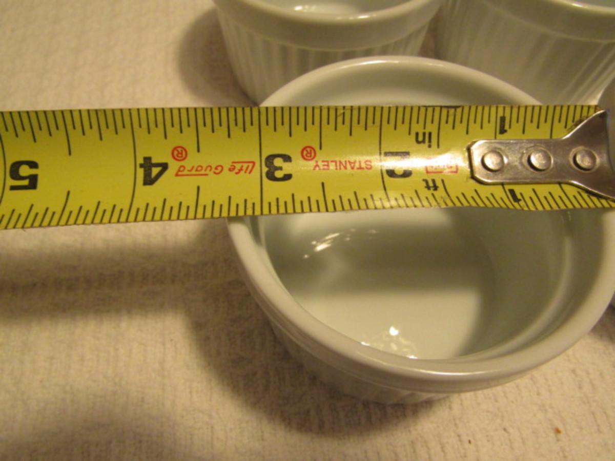 12 Porcelain Sauce Cups and Ramekins (6 of Each). Ramekins are 3 1/4". Sauce Cups are 2 1/4"