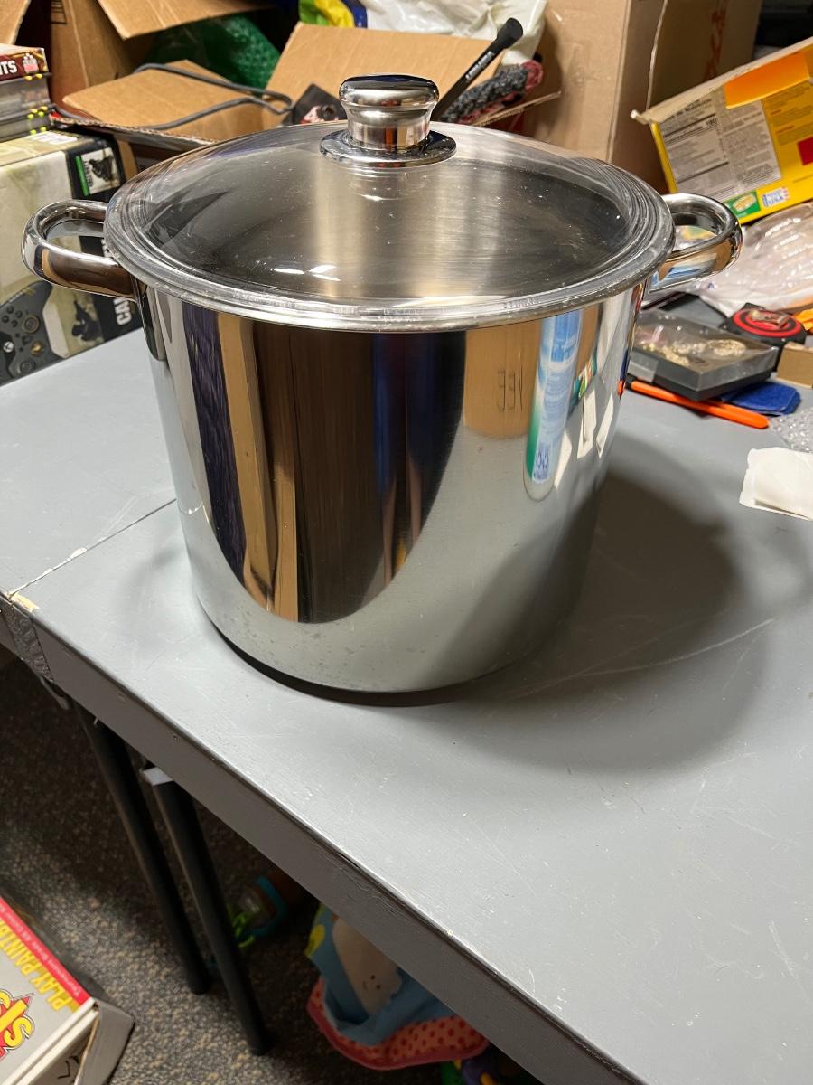 12 quart stock pot made from 18-10 stainless steel to ensure rapid and efficient heat distribution for cooking. Brand new and comes with matching lid.