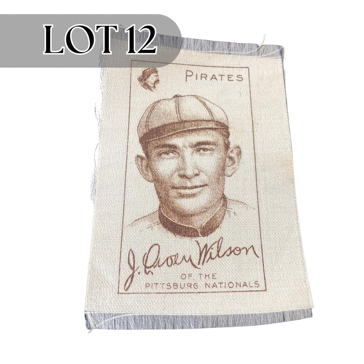 One antique 1910-1911 S74 silk J. Owen Wilson of the Pittsburg Nationals Pirates. Please see photos for details and condition. Any condition statement is given as a courtesy to a client, is an opinion, and should not be treated as a statement of fact. Reference to condition written, oral or within a condition report shall not be regarded as a full account of condition and may not include all defects, alterations, or restorations. Absence of a condition report does not imply a lot is flawless or lacking imperfections or damage. Katherine’s Auction & Appraisal Service shall have no responsibility for any error or omission. Returns shall not be accepted on the basis of condition. ::: Shipping is available on this lot. If you require shipping you must let us know at the close of the auction. We will coordinate with you after the item has been won. Shipping fees will include insurance up to or exceeding the value of all items being mailed. If you have any questions regarding this lot please contact the auctioneer either via this website, by direct email or by phone. PICK UP TIMES and other important information can be found in the TERMS and DESCRIPTION of the auction. Please take a look for pertinent information. Thanks!