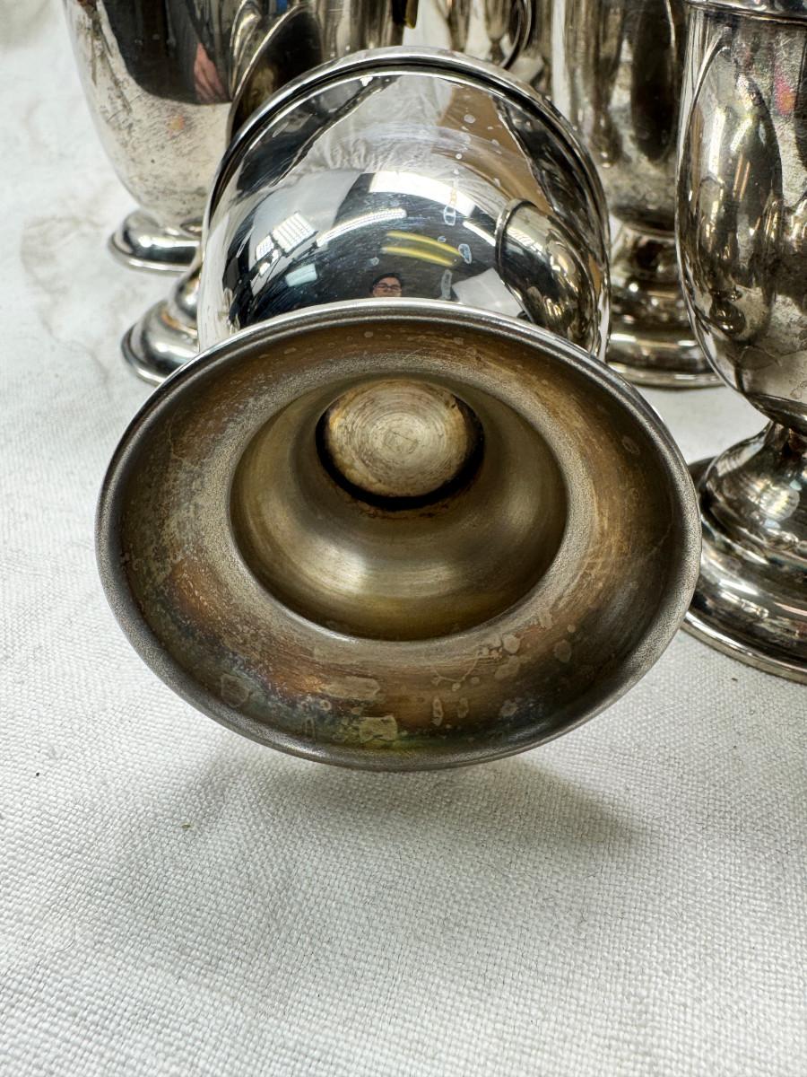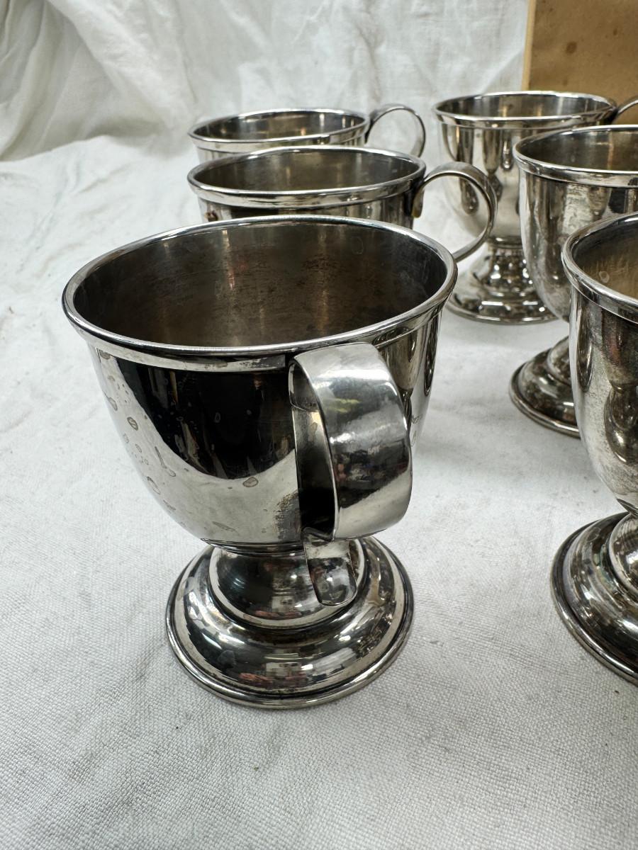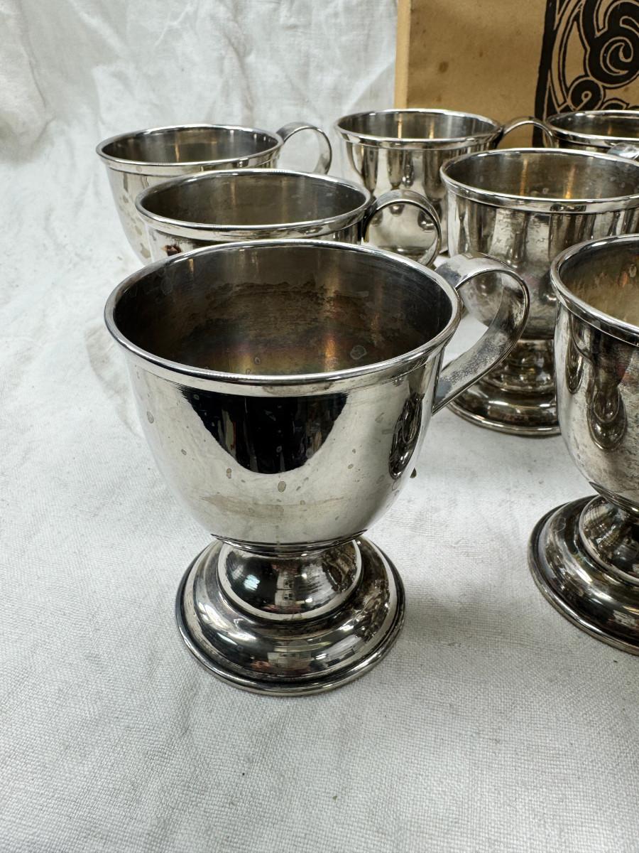 These are vintage silver-plated punch cups, likely part of a larger punch bowl service.