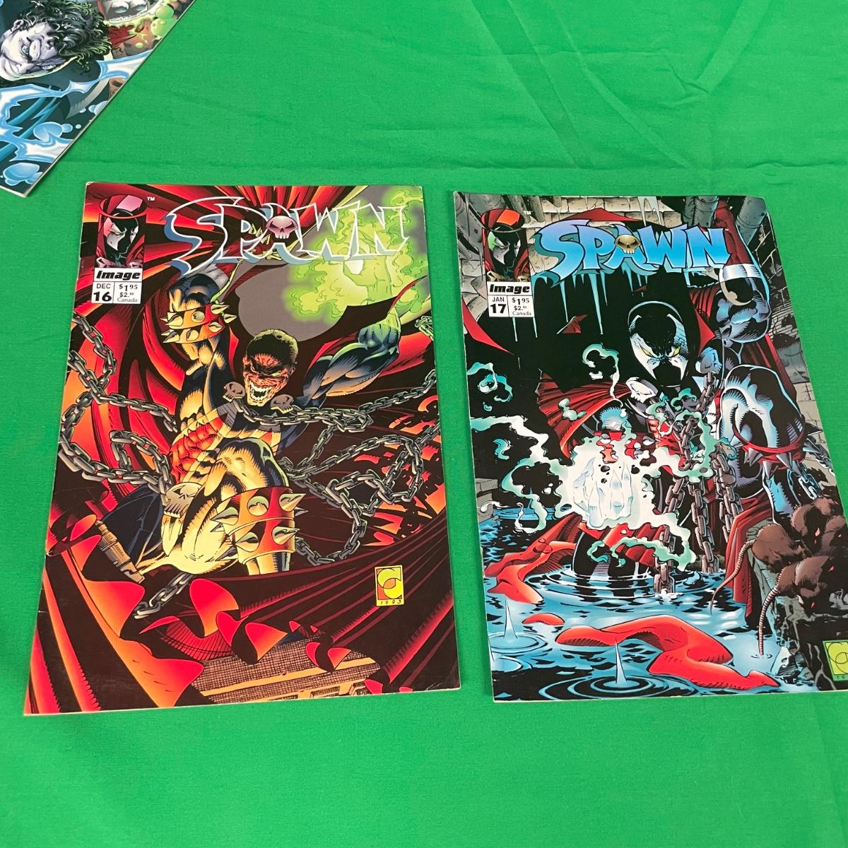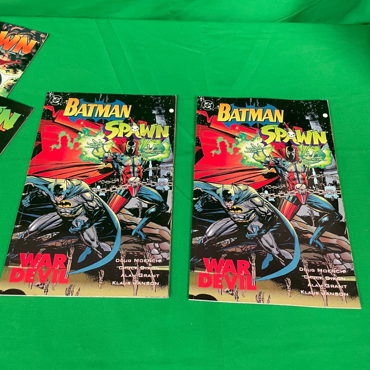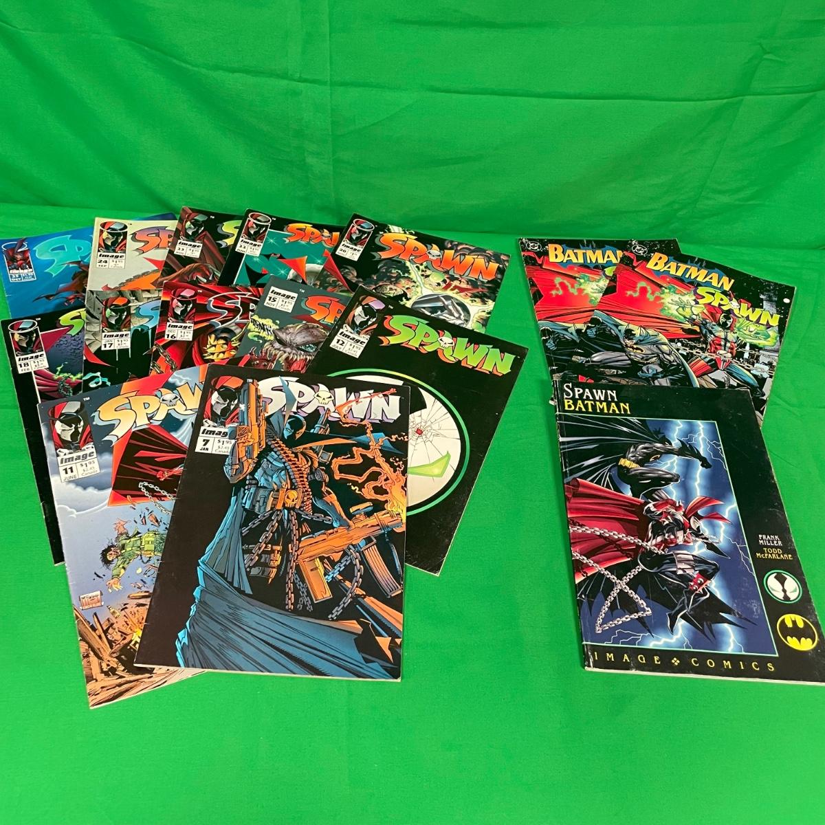 12 Image’s Spawn comics spanning issues seven through 22. Lot also contains two DC graphic novels featuring Spawn and Batman in War Devil and an Image novel Spawn Batman. With the comics, there is also a 15” tall Malebolgia (from Spawn) action figure and a Violator Alley Play action figures . Malebolgia is hard plastic with moveable parts and fuzzy hair on top. It appears to be electronic and likely needs its battery replaced to function. See images. Items are sold as-is. No returns or refunds. Please bid accordingly.