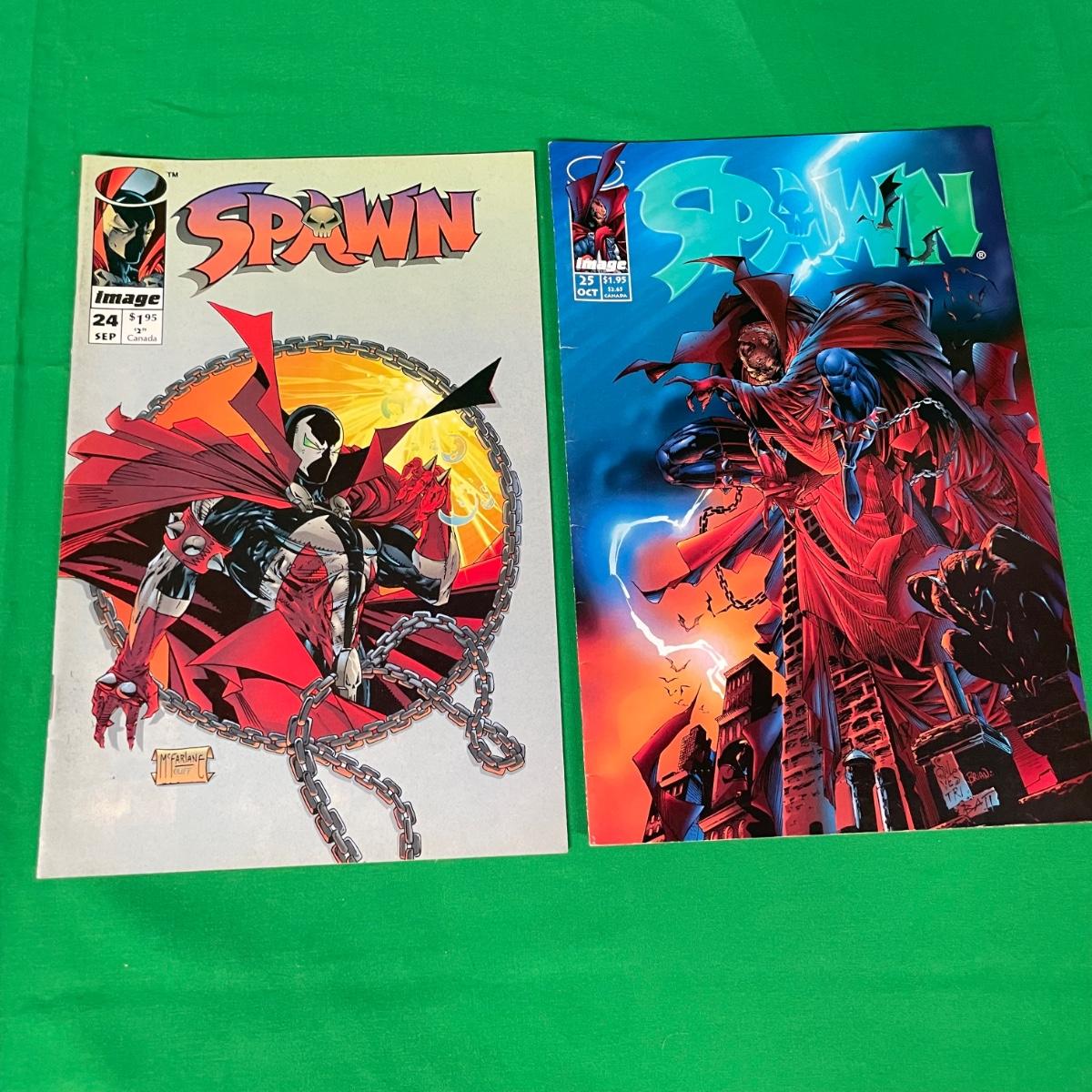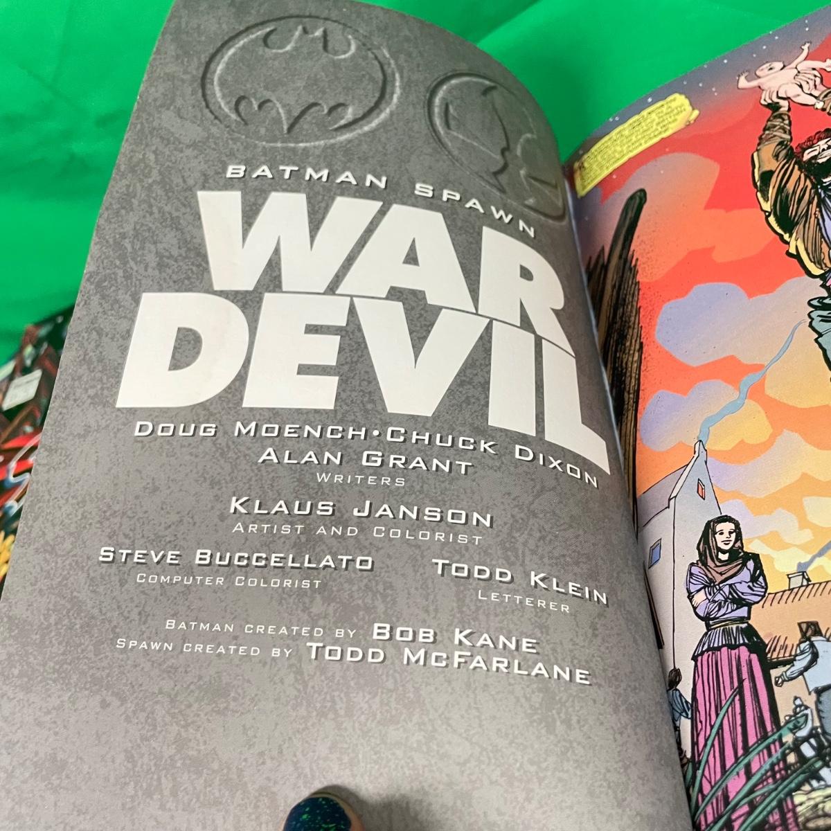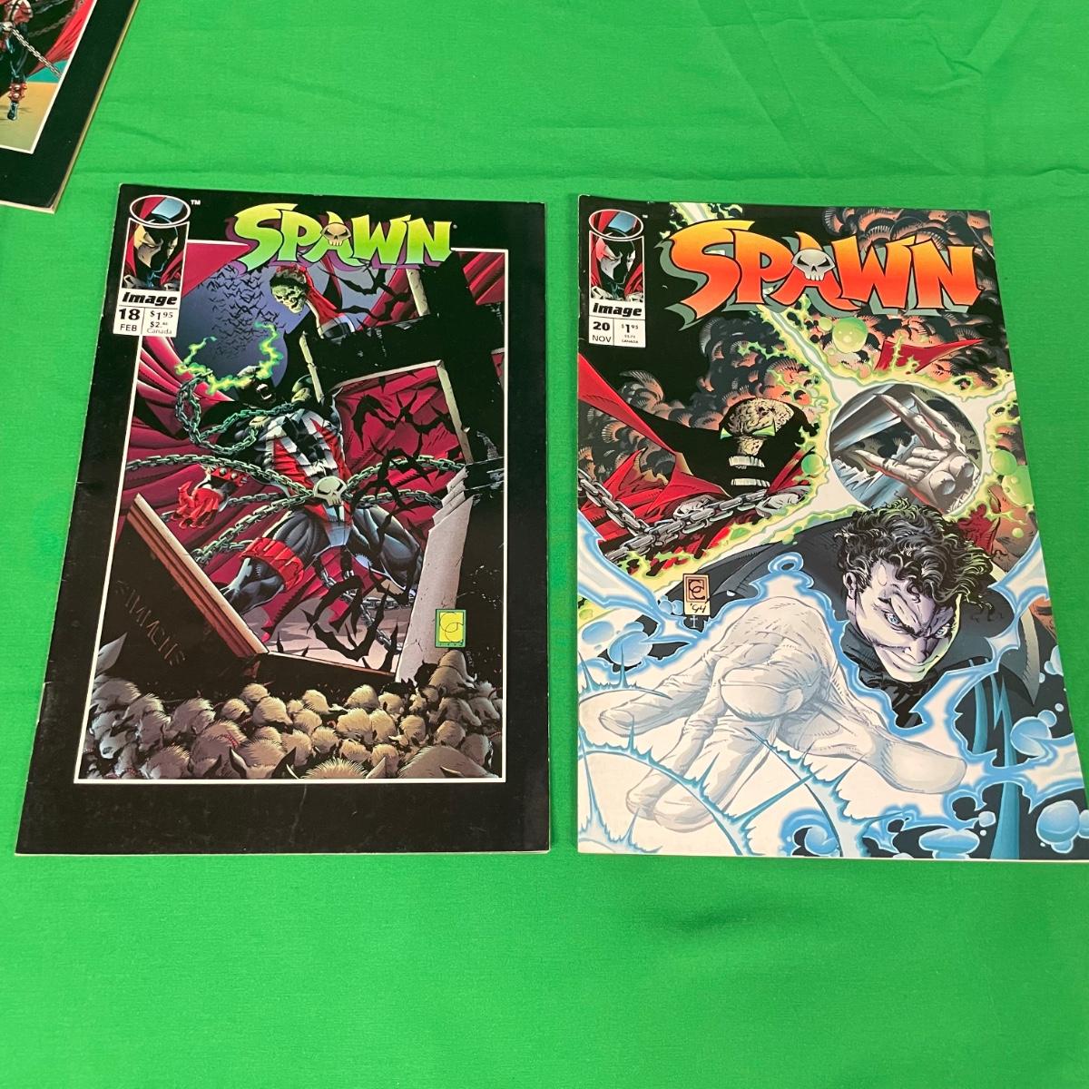 12 Image’s Spawn comics spanning issues seven through 22. Lot also contains two DC graphic novels featuring Spawn and Batman in War Devil and an Image novel Spawn Batman. With the comics, there is also a 15” tall Malebolgia (from Spawn) action figure and a Violator Alley Play action figures . Malebolgia is hard plastic with moveable parts and fuzzy hair on top. It appears to be electronic and likely needs its battery replaced to function. See images. Items are sold as-is. No returns or refunds. Please bid accordingly.