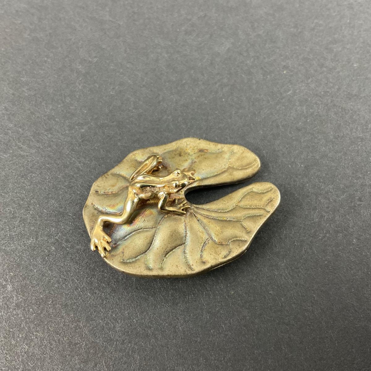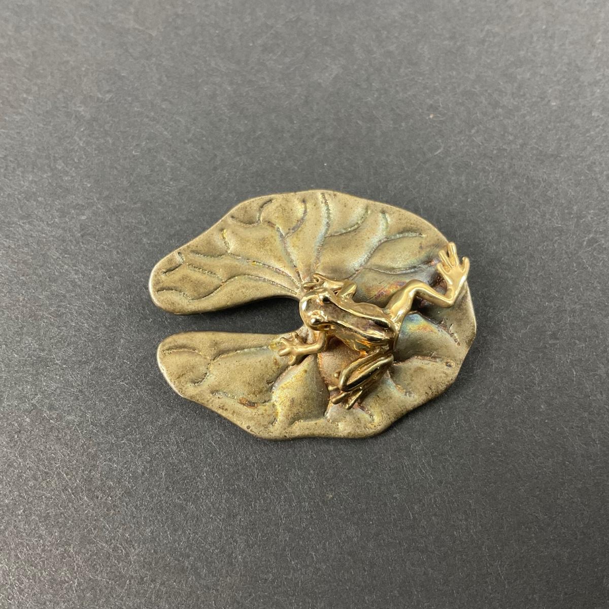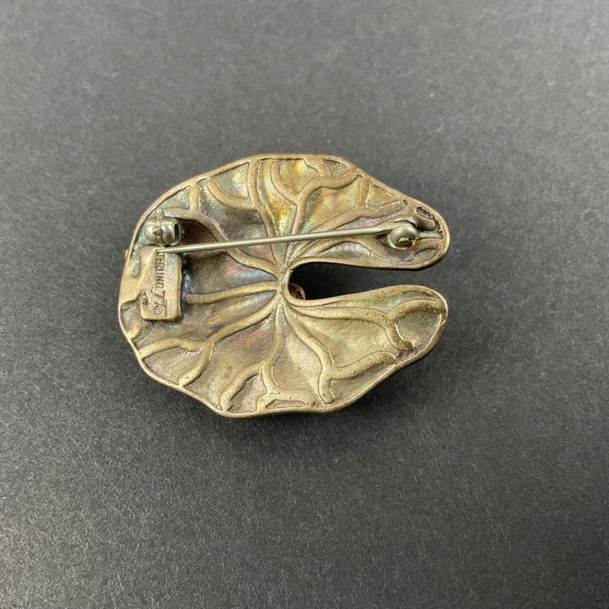 -12- STERLING | Artist Signed Frog On Lily Pad Brooch | Marked