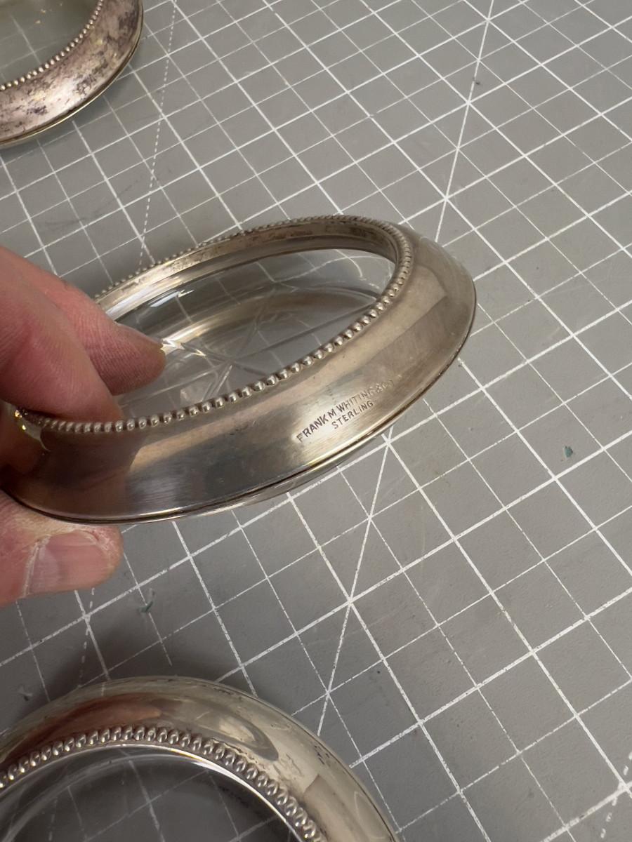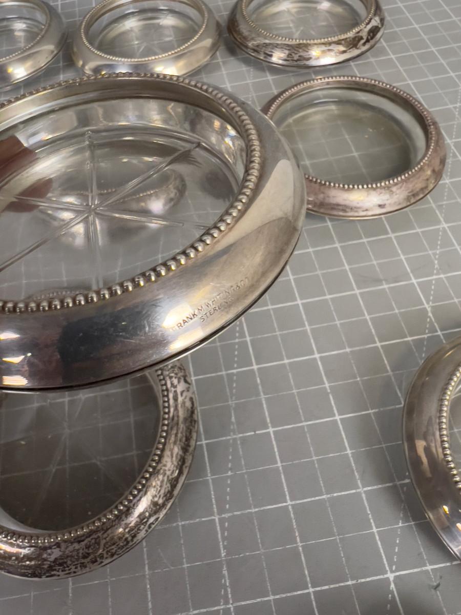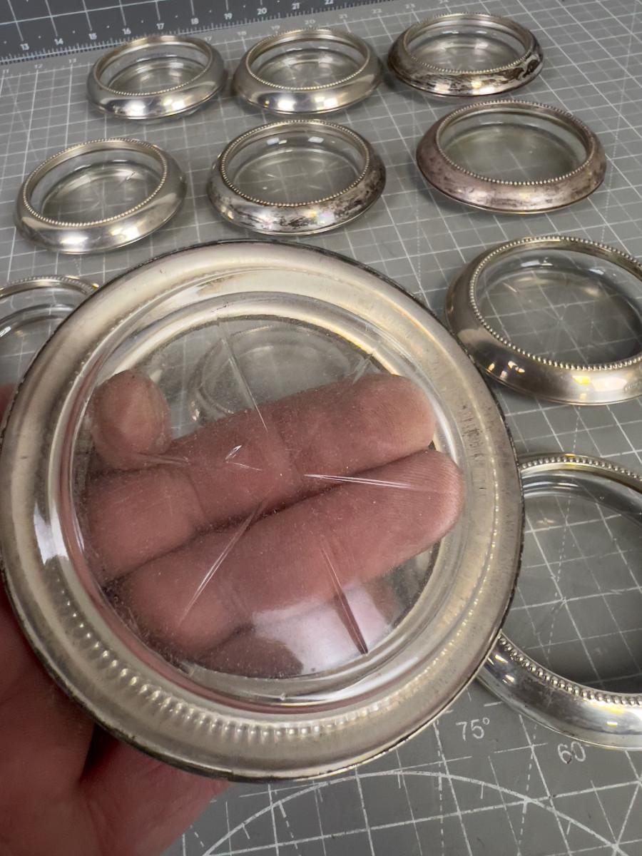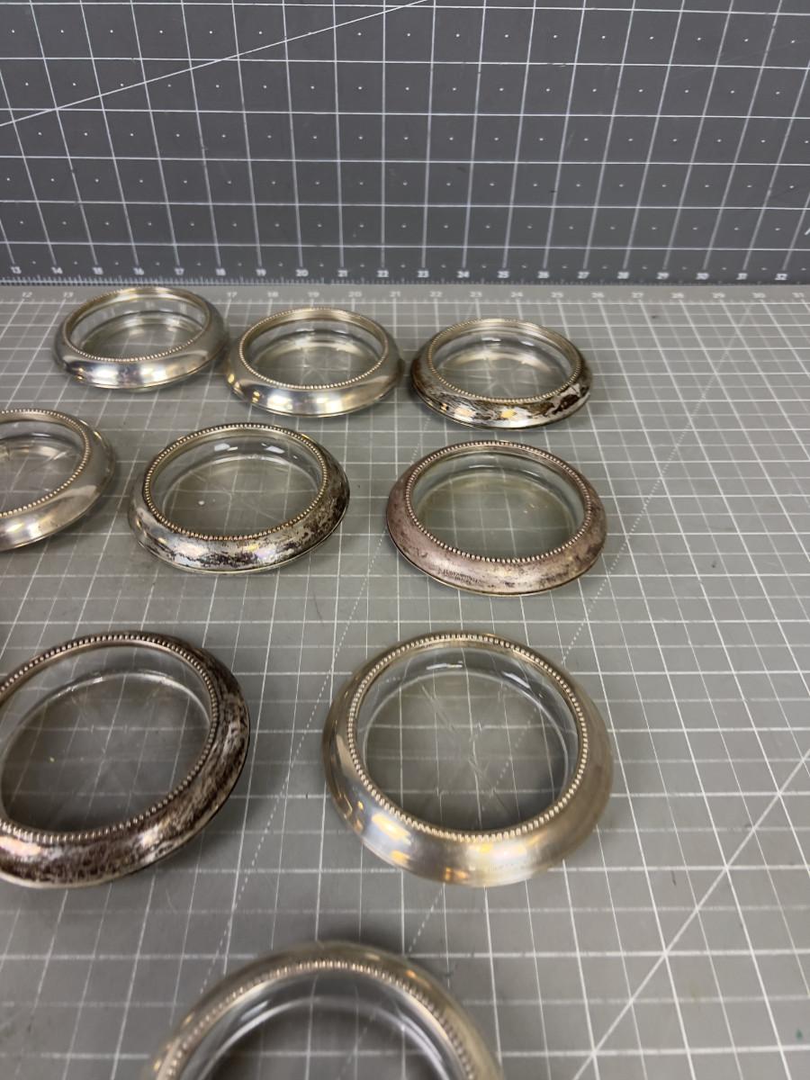 12 Sterling Silver and Glass Coasters