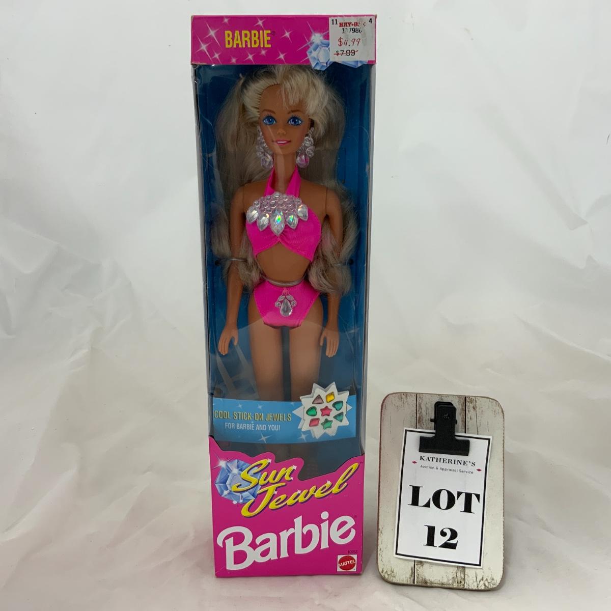 Sun Jewel Barbie, ready for fun in the sun!! New, in box. Box does have the original price sticker on the front. Please see photos for details and condition. !!! Proceeds from this auction will be donated to the NEW COMMUNITY SHELTER in Green Bay, Wisconsin. Please see Sale Description to the Left for more information. !!! ::: Shipping is available on this lot. If you require shipping you must let us know at the close of the auction. We will coordinate with you after the item has been won. Shipping fees will include insurance up to or exceeding the value of all items being mailed. If you have any questions regarding this lot please contact the auctioneer either via this website, by direct email or by phone. PICK UP TIMES and other important information can be found in the TERMS and DESCRIPTION of the auction. Please take a look for pertinent information. Thanks!