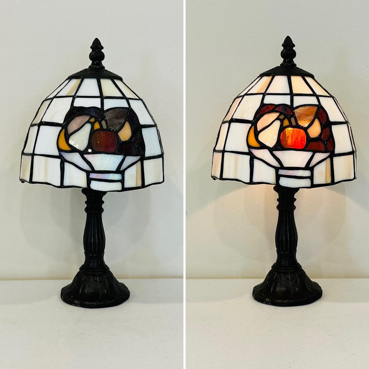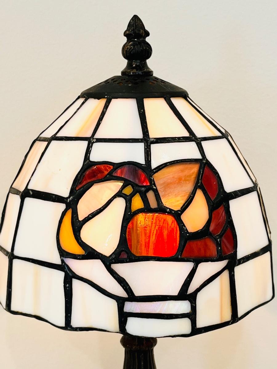 Single (1) ~ 12” Tall Tiffany Style Metal Base Table Lamp ~ Stained Glass Shade
