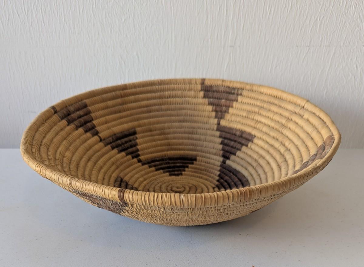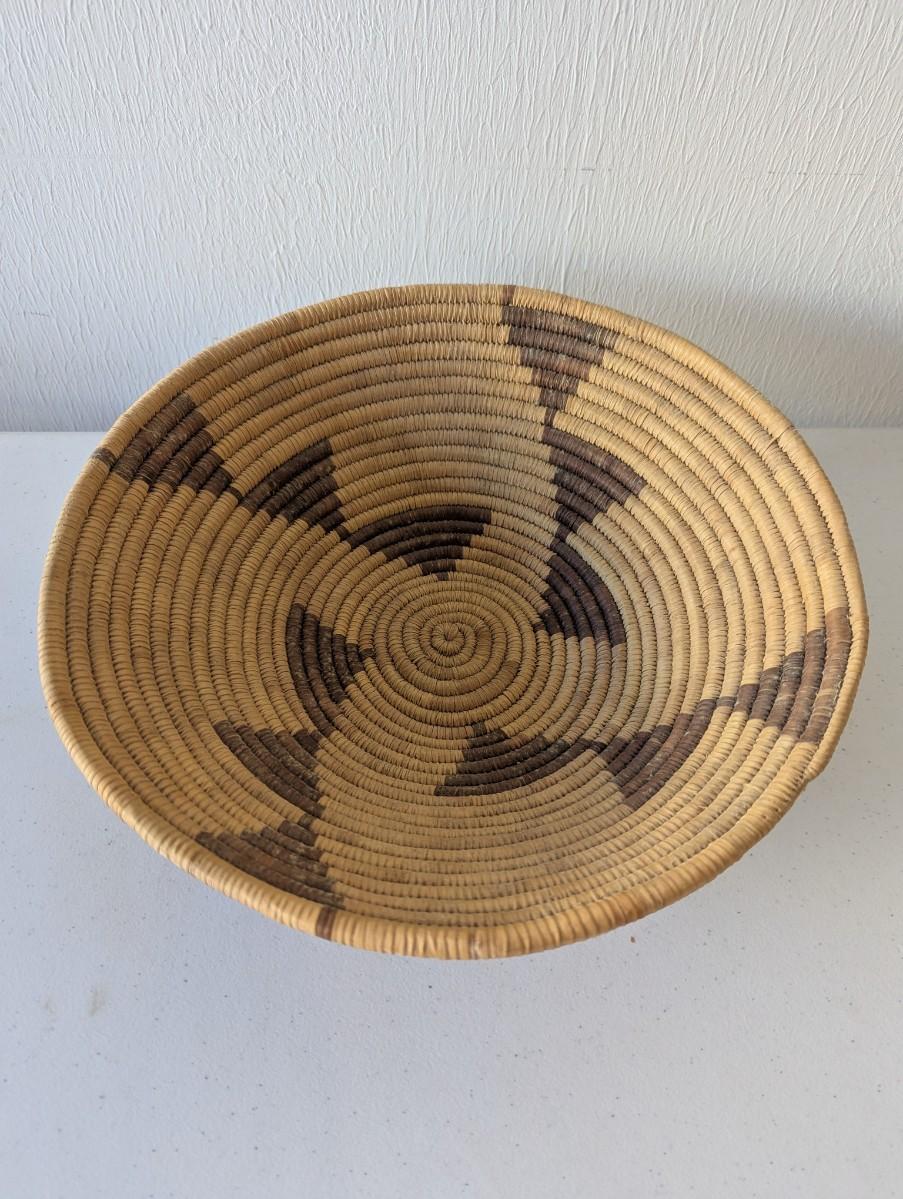 12" Vintage Coiled Straw Basket/Bow With Accents