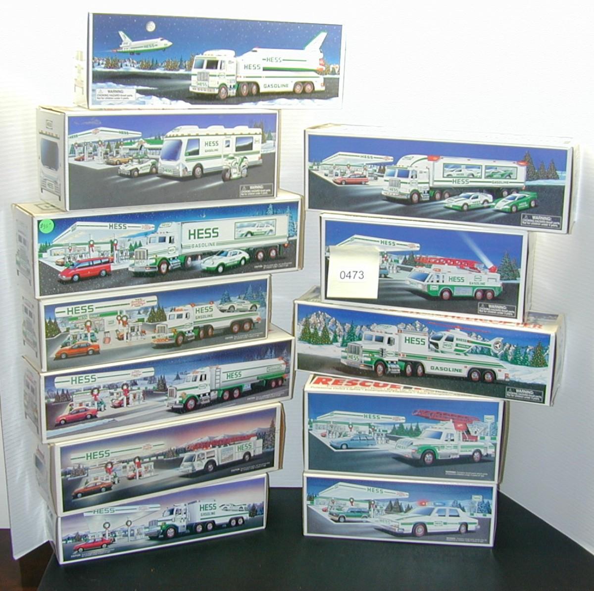 12 Vintage Hess Trucks New In Original Boxes 1988 - 1999 - Lot 473