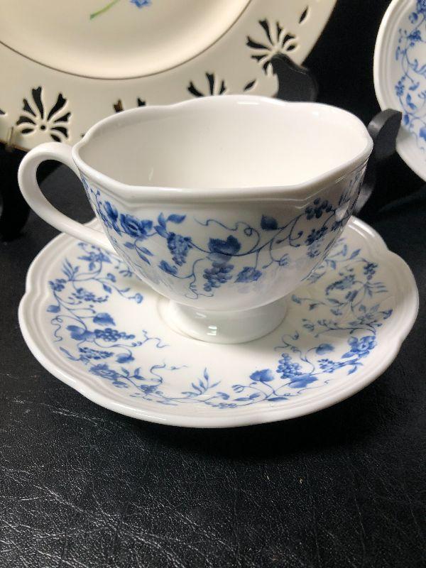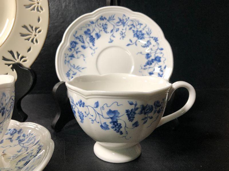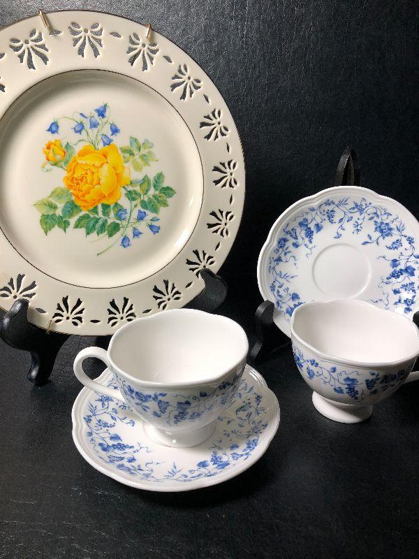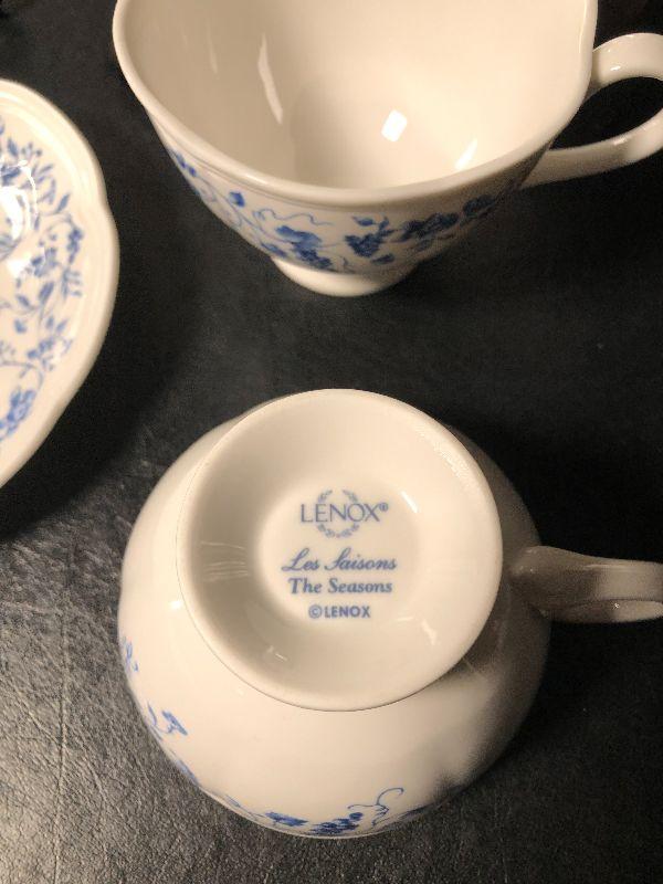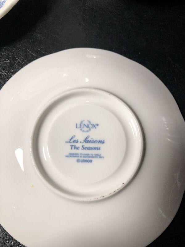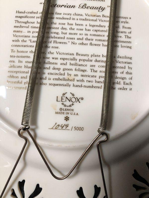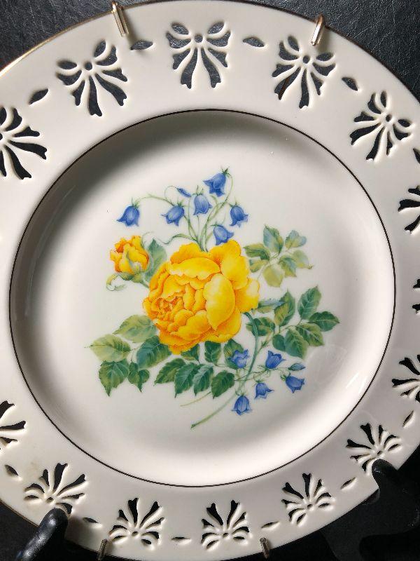 Limited Edition Colonial Bouquet plate with hanging brackets. Lenox Les Laisons "The Seasons" tea cup and sauser. *Please review all photos for condition and contents of lot.