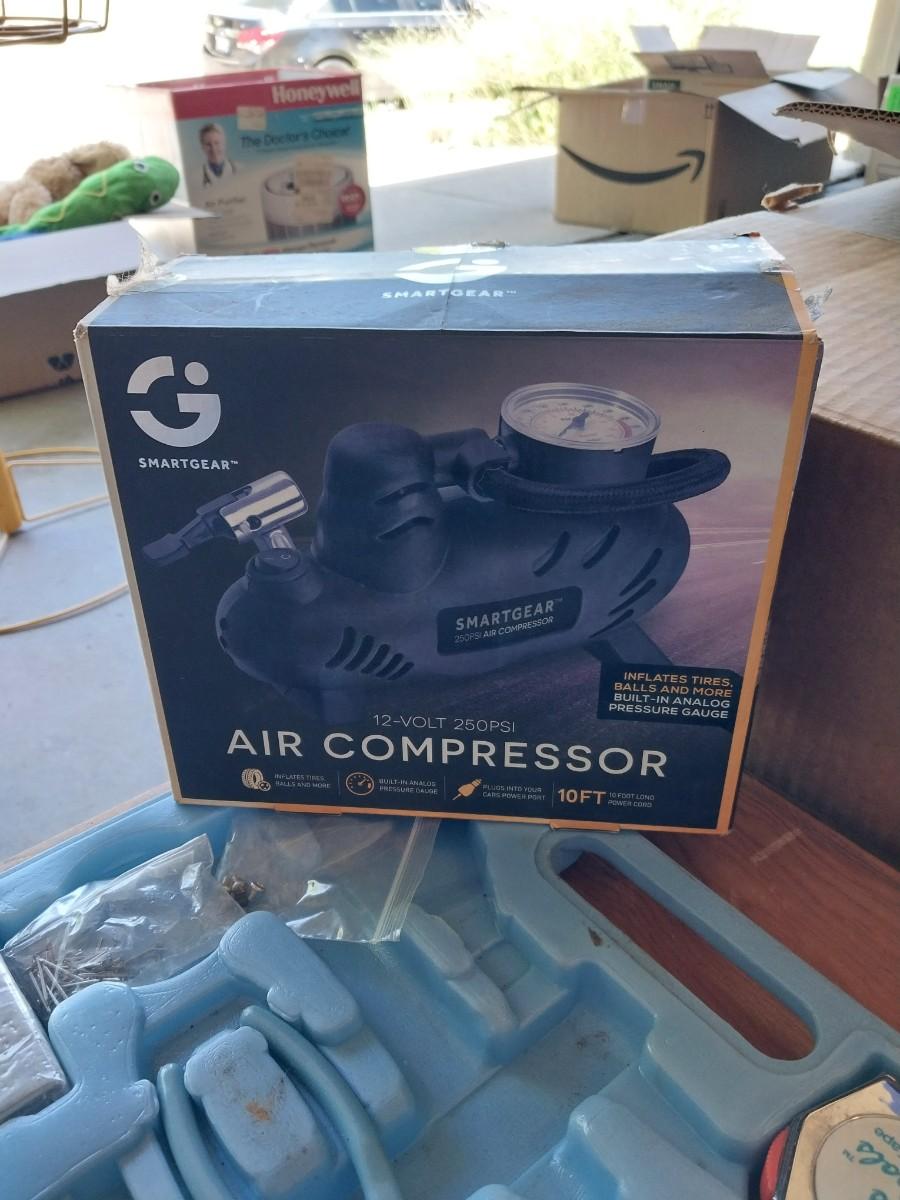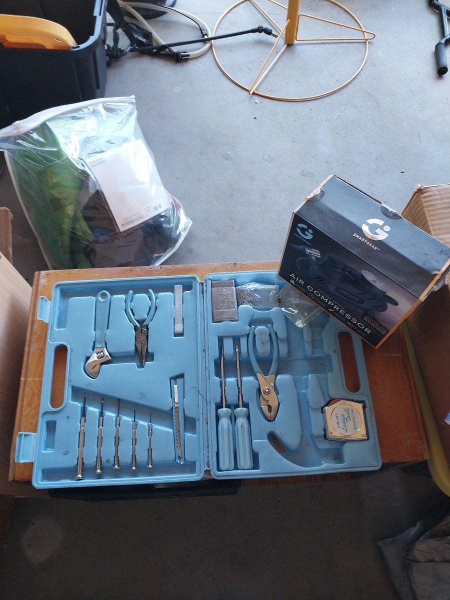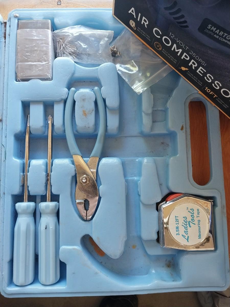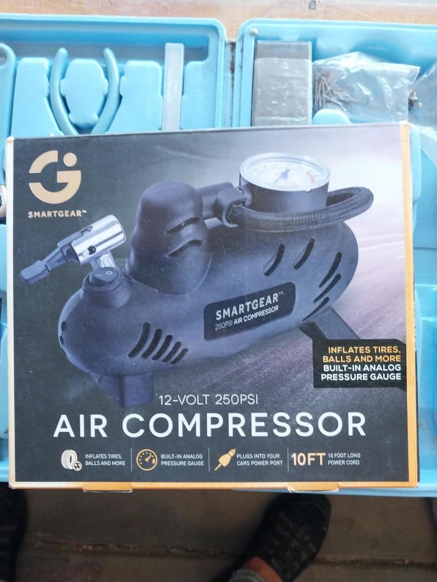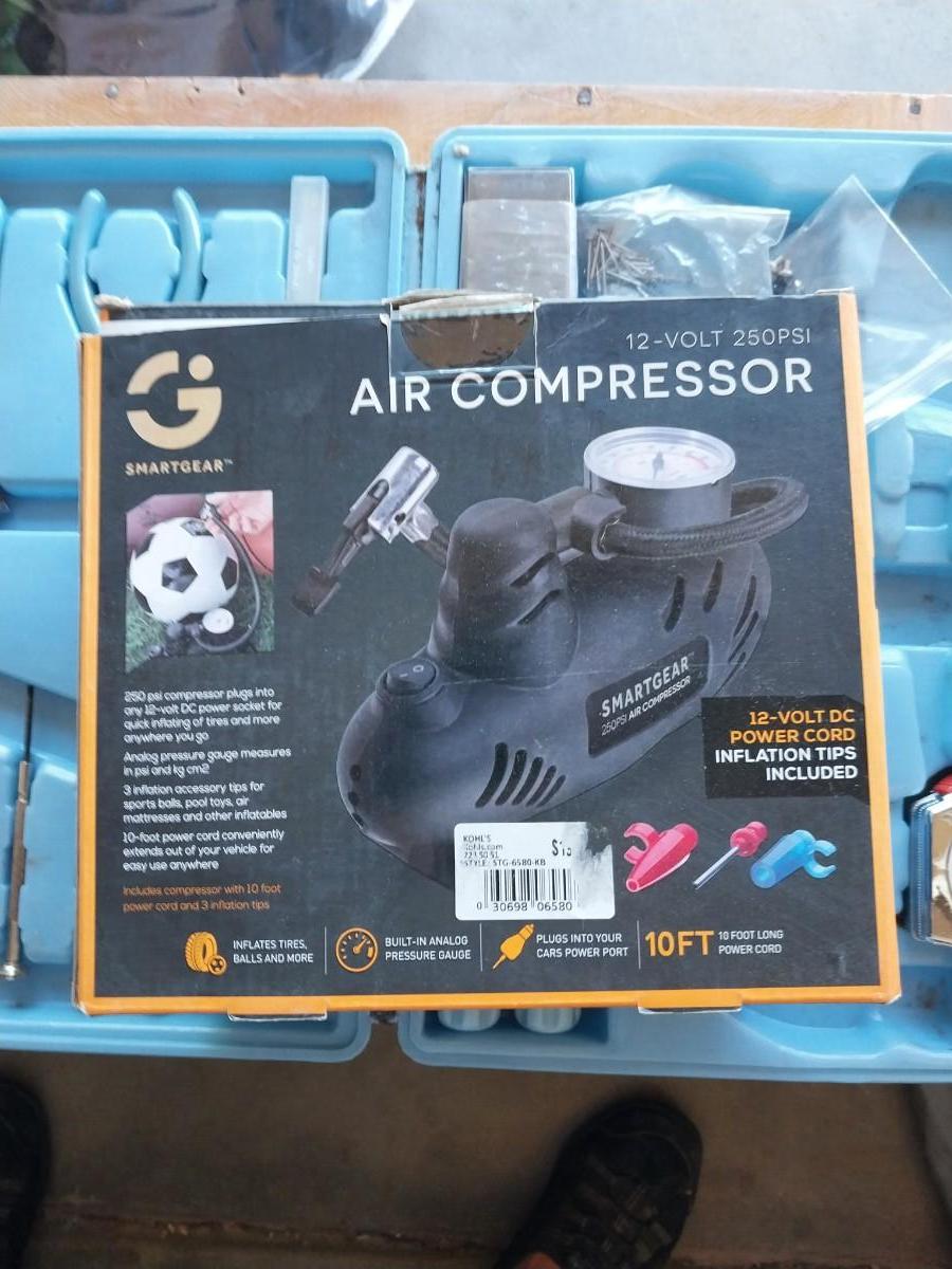 12 VOLT PORTABLE AIR COMPRESSOR AND TOOL KIT