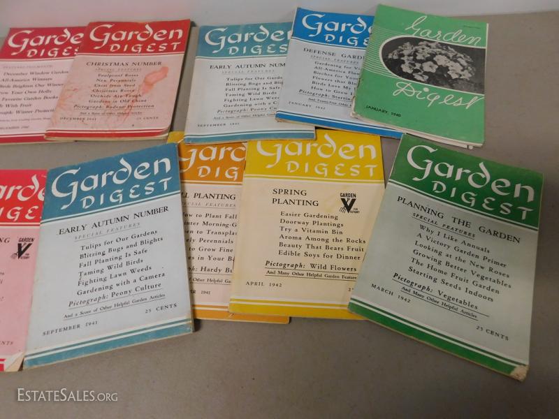 12 Volumes of Garden Digest 1940-1942 with some war issues including victory garden features. All in nice condition considering age