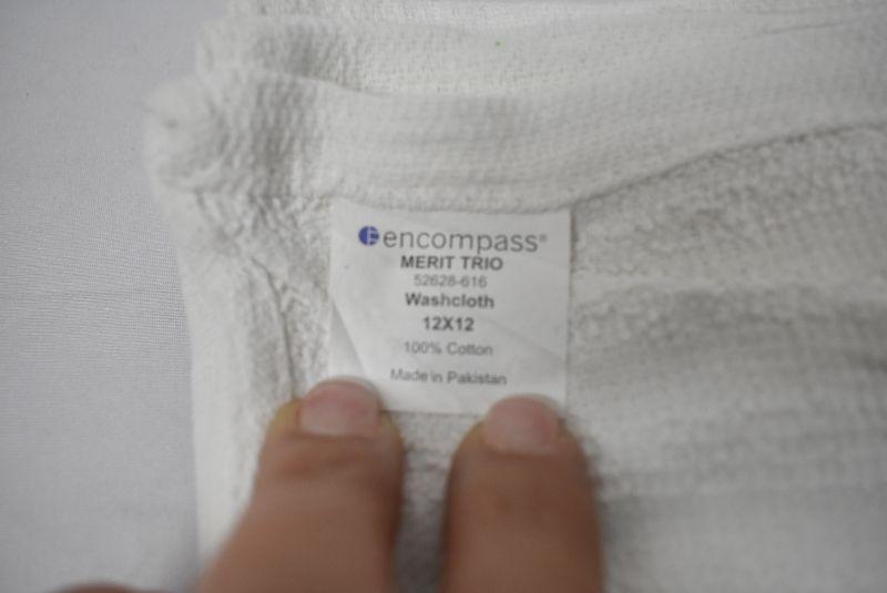 12 White Washcloths by Encompass Merit Trio 12" x 12" No Packaging - New