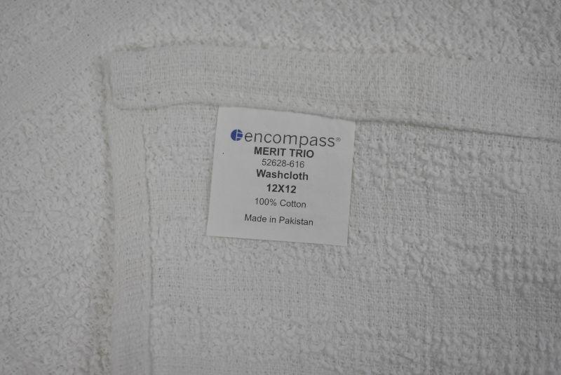 12 White Washcloths, Encompass Merit Trio 12"x12" No packaging - New