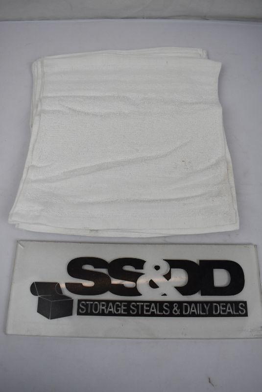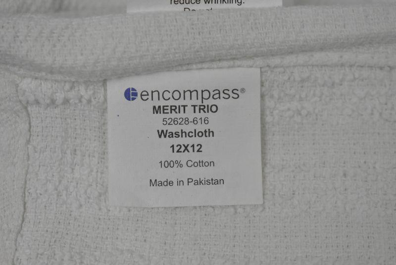 12 White Washcloths. New, but with Warehouse Dirt 12x12 by Encompass Merit Trio