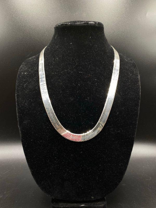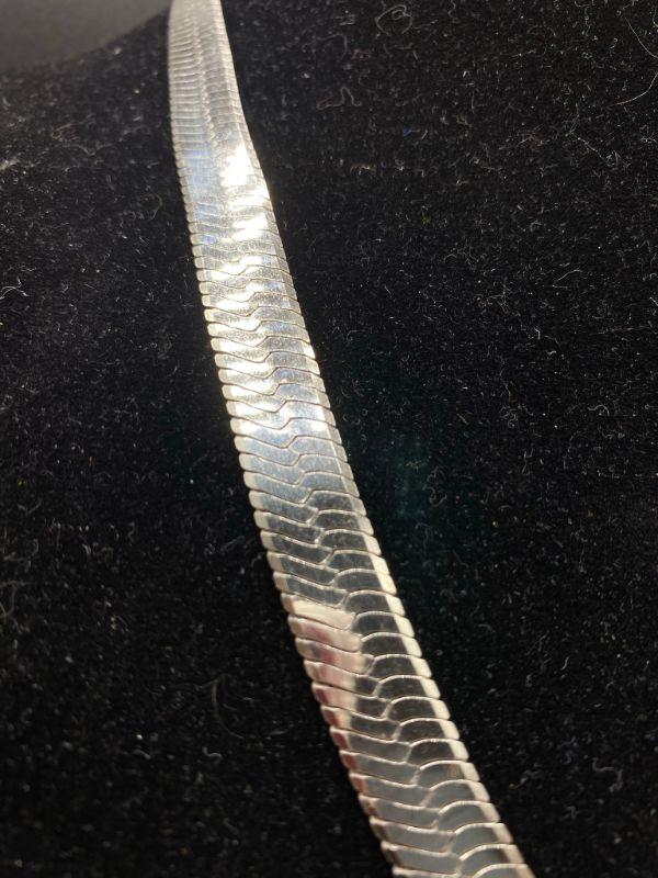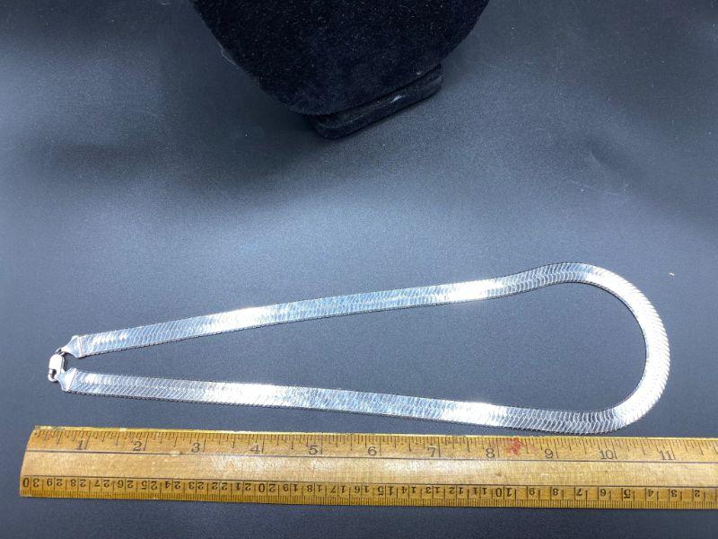 Beautiful herringbone sterling silver necklace. Stunning chain has an 11" drop and is almost 1/2" wide. Made in Italy.
