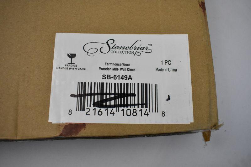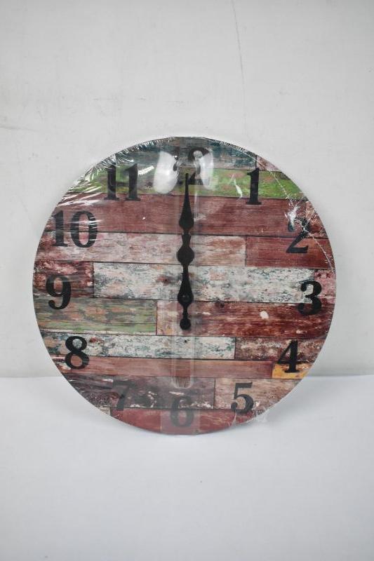 12" Wooden Wall Clock, Worn Wood Look Farmhouse Style - New
