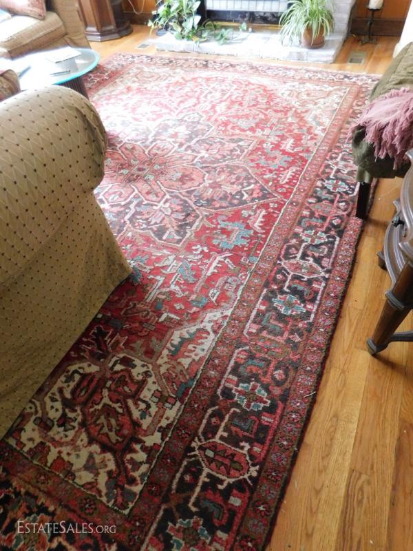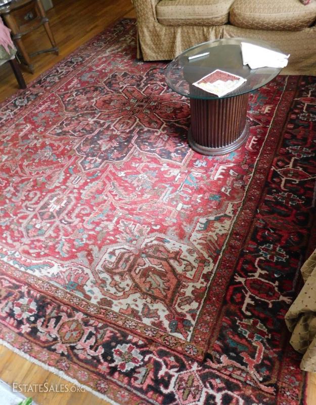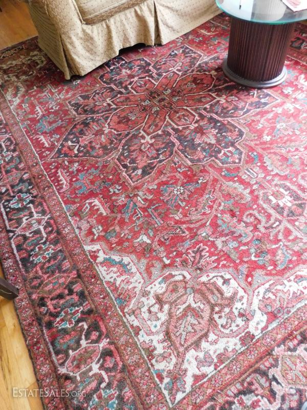 Trabiz hand knotted' wool area rug. Minimal wear. Needs cleaning.