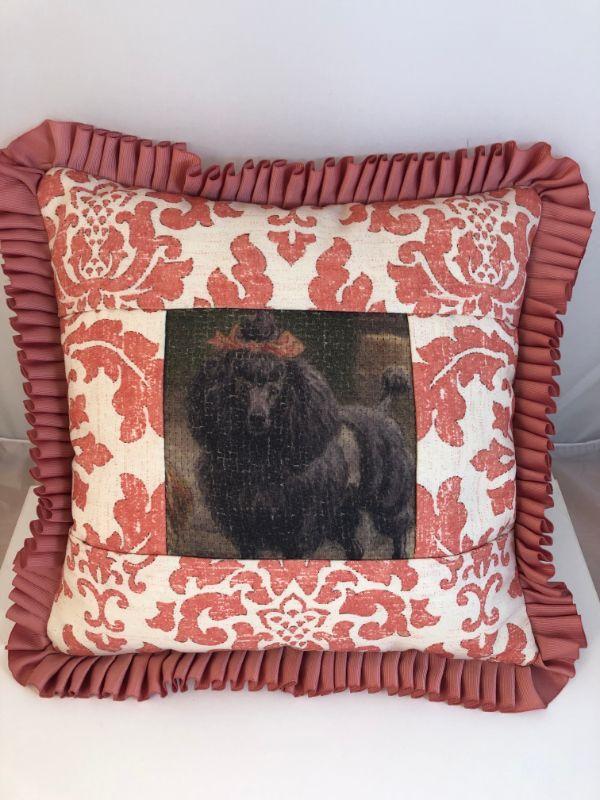 12" x 12" inch Decorative Pillow - Standard Poodle - Cream and Peach/Pink Design