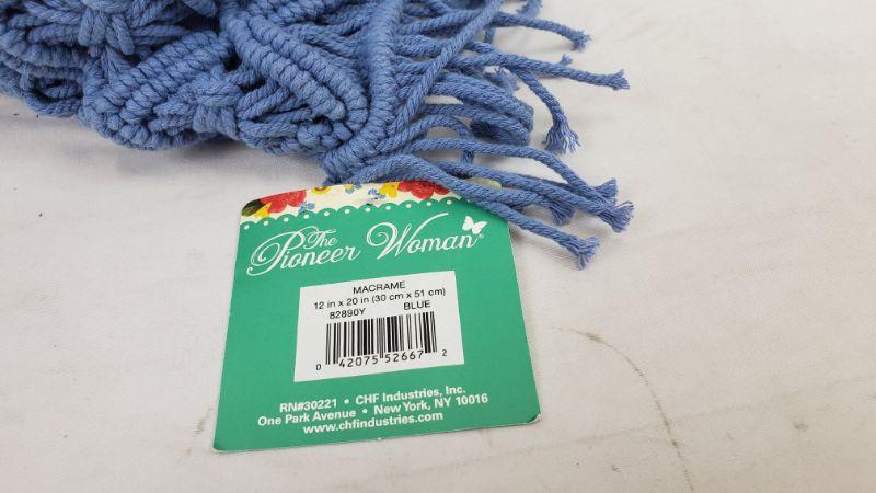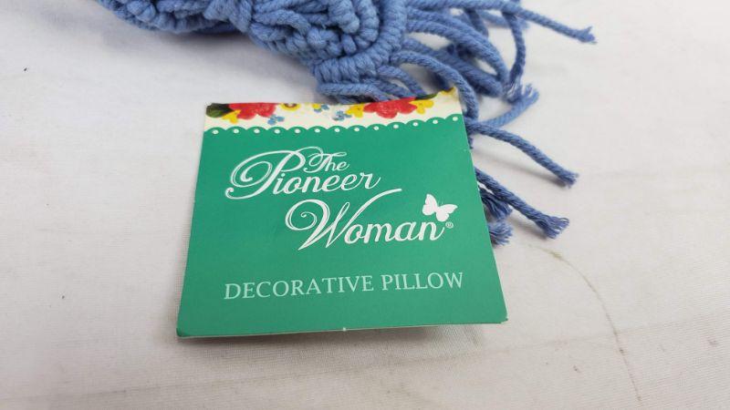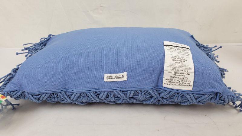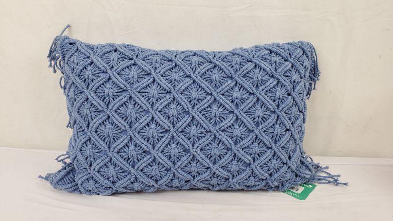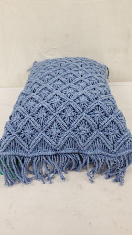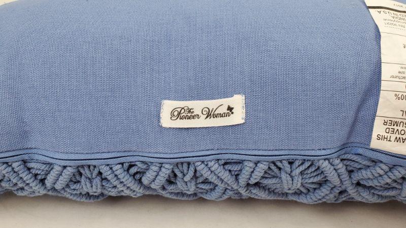 12" x 20" Blue Macrame Throw Pillow, The Pioneer Woman - New