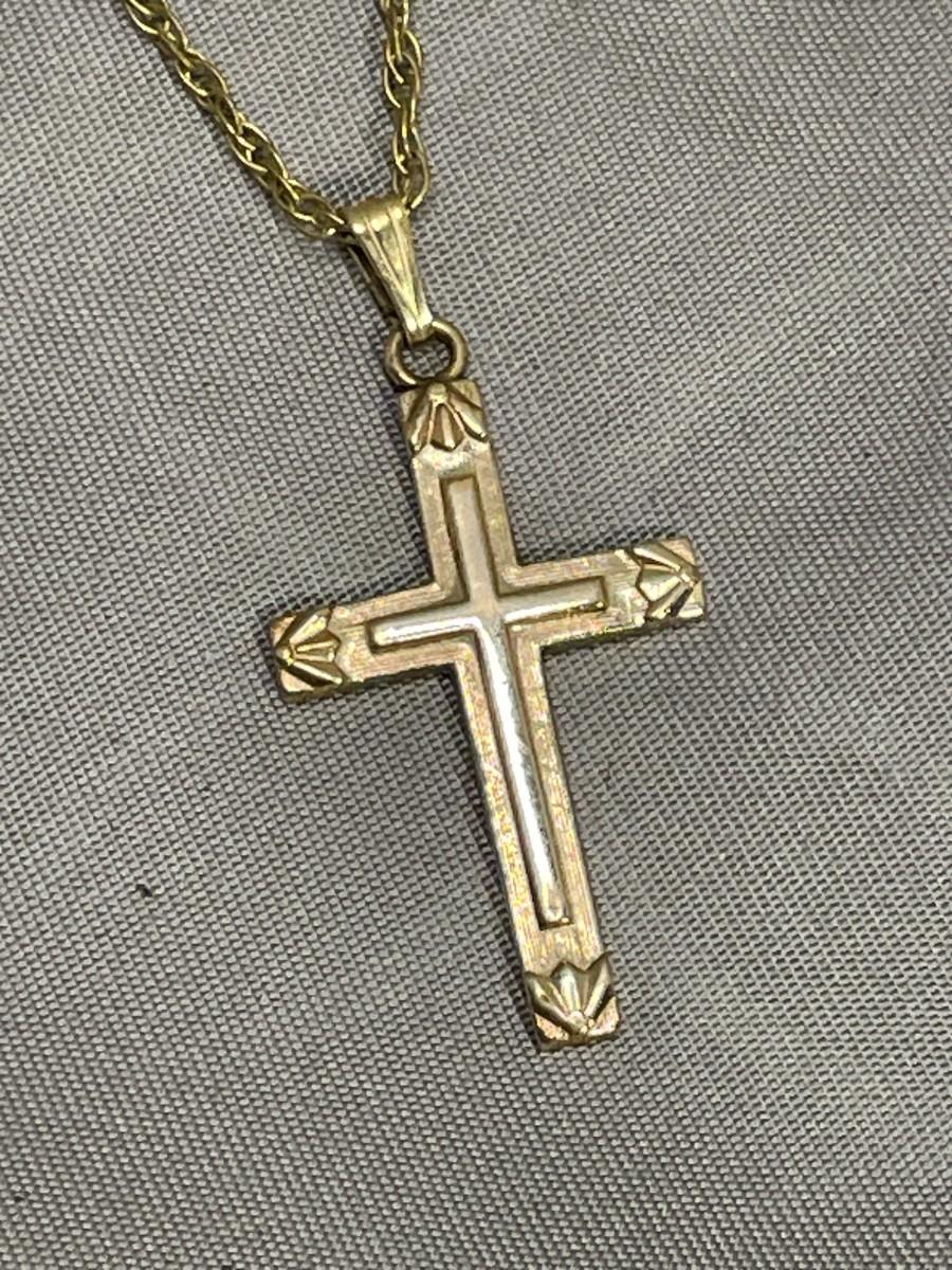 The chain is about 18 inches long and the cross is about 1 inch long. The cross is marked Bojar. Both are in very good condition.