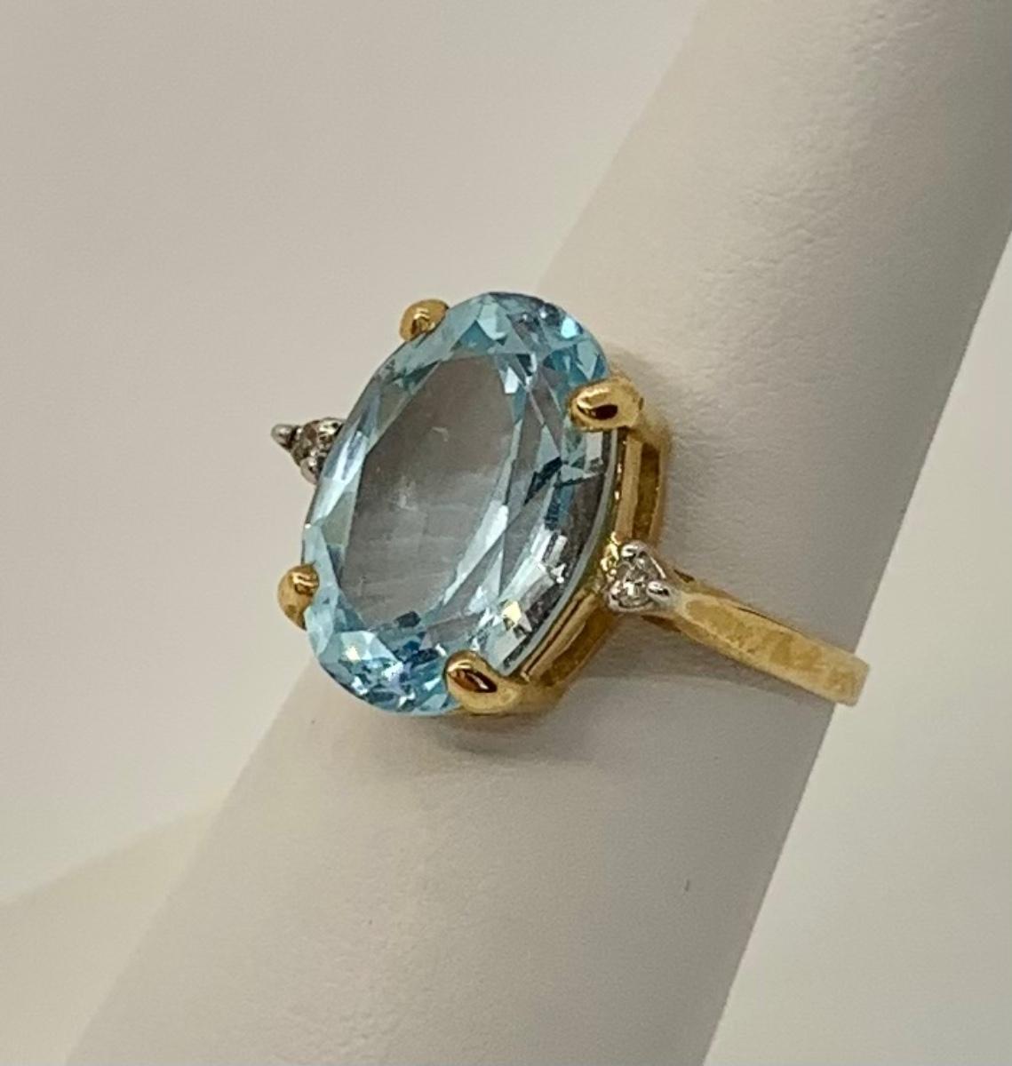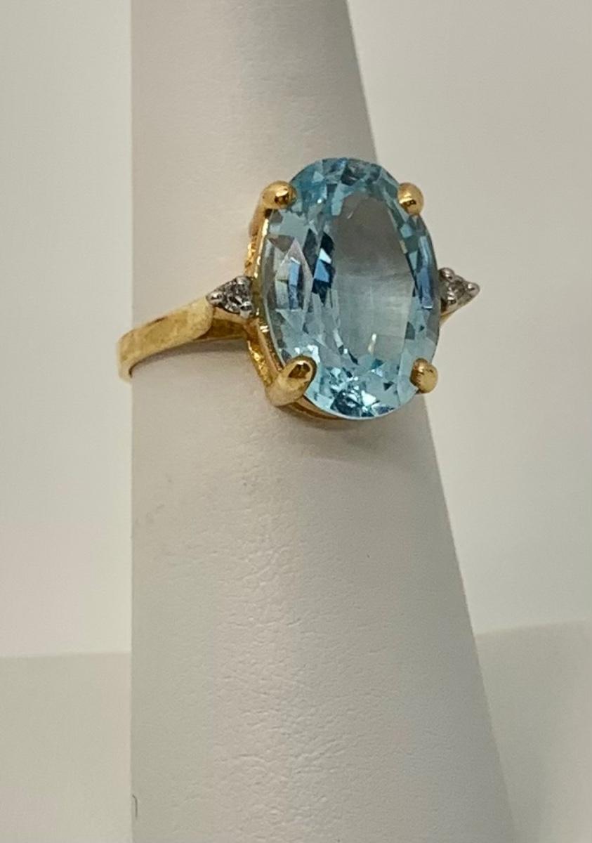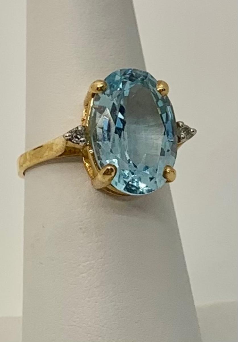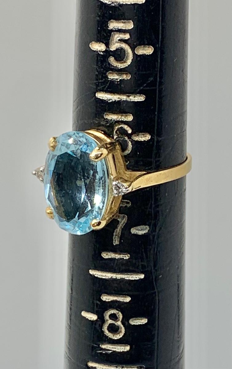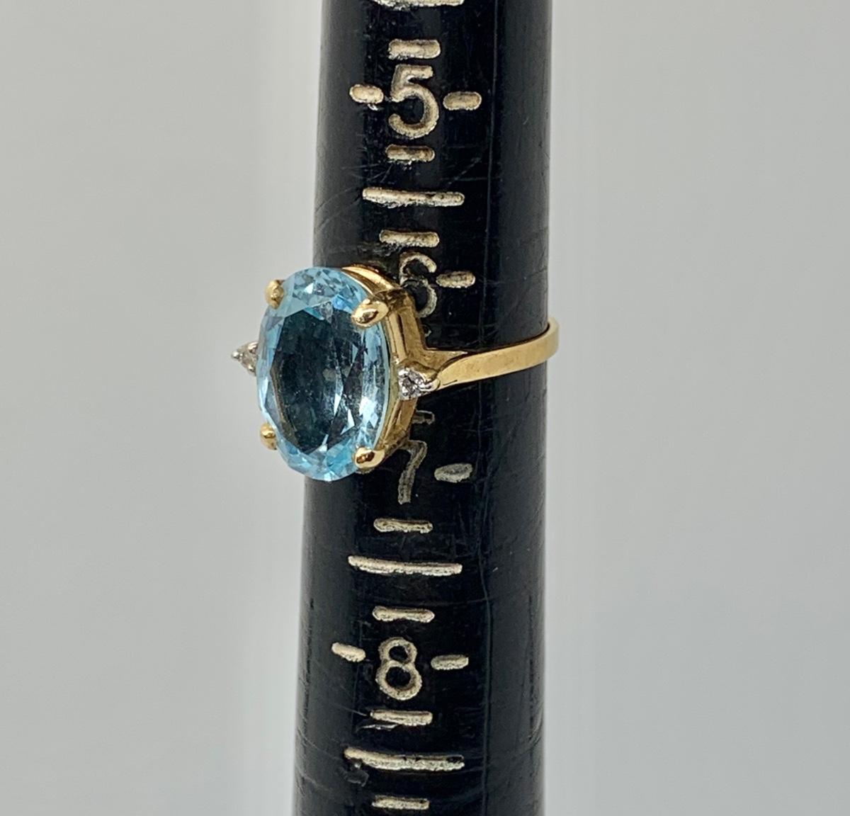 3.8g 14K Yellow Gold Ring Blue Topaz & Diamond accents
