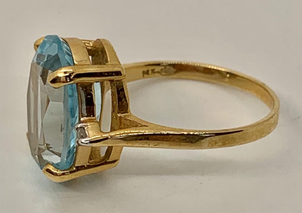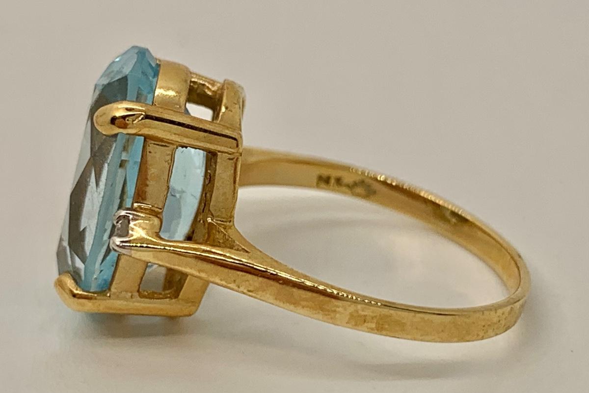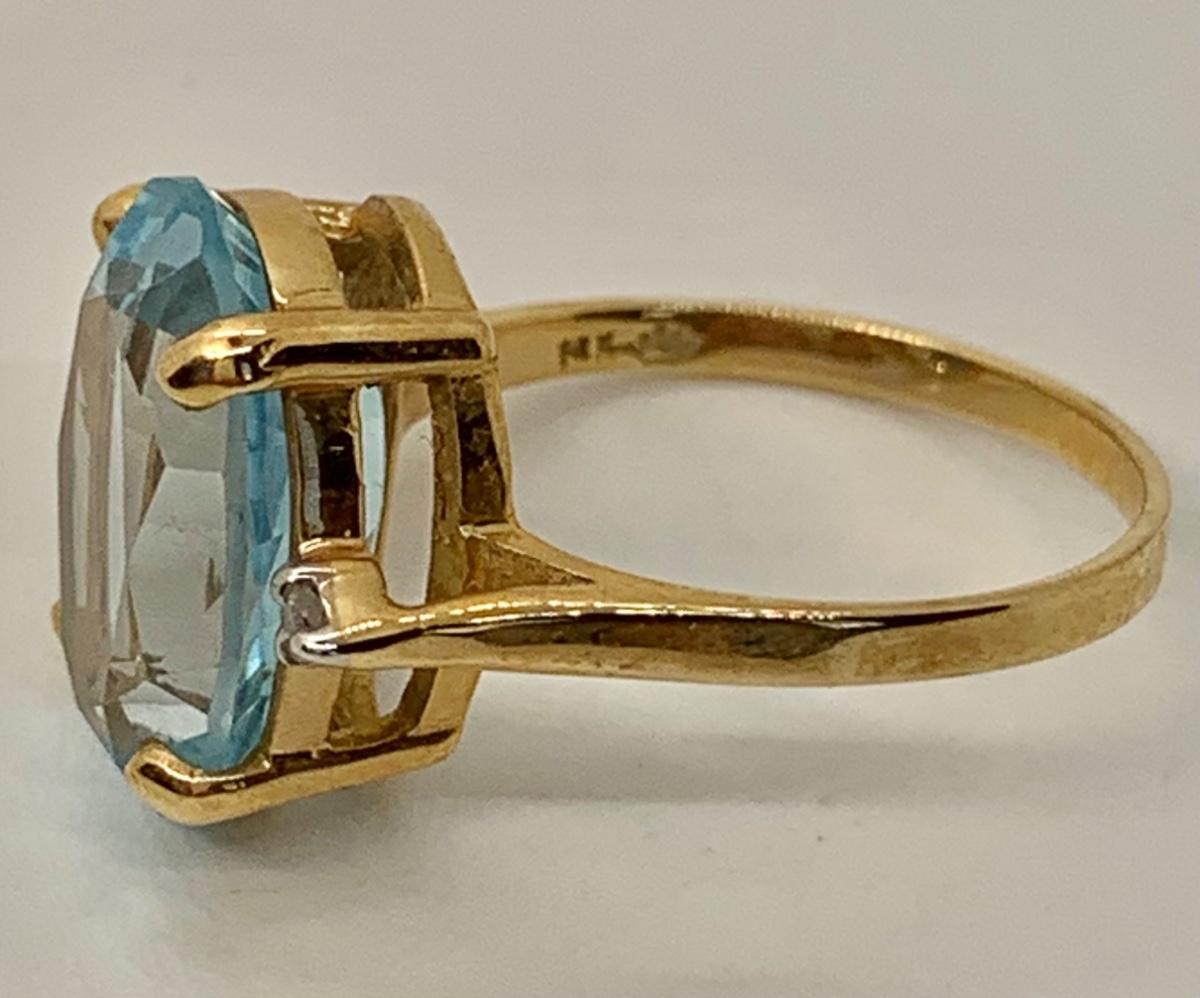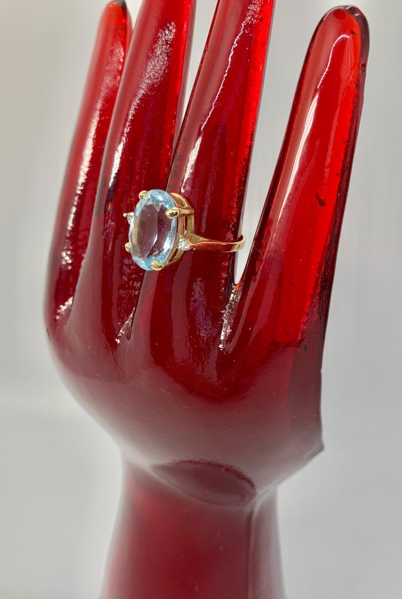 3.8g 14K Yellow Gold Ring Blue Topaz & Diamond accents