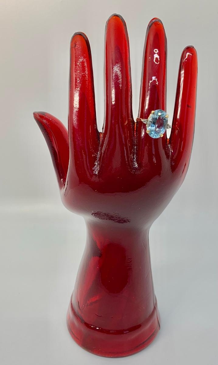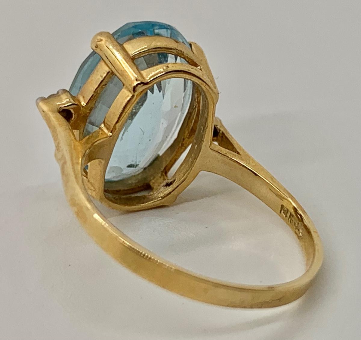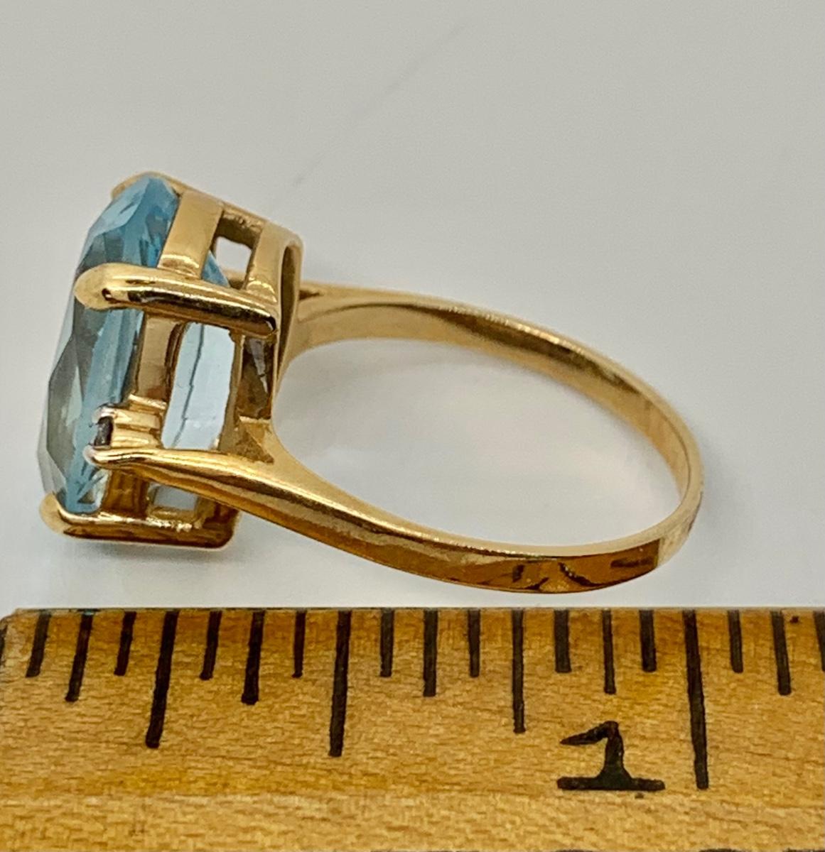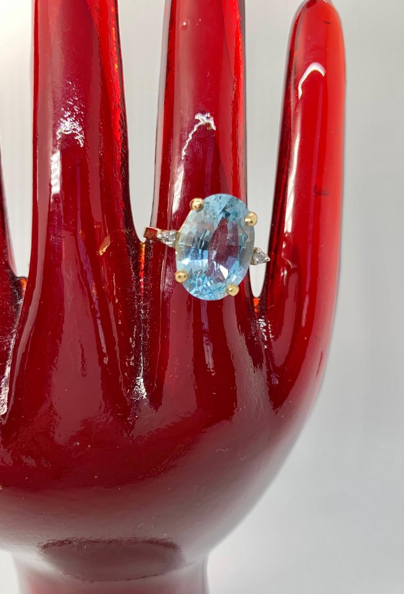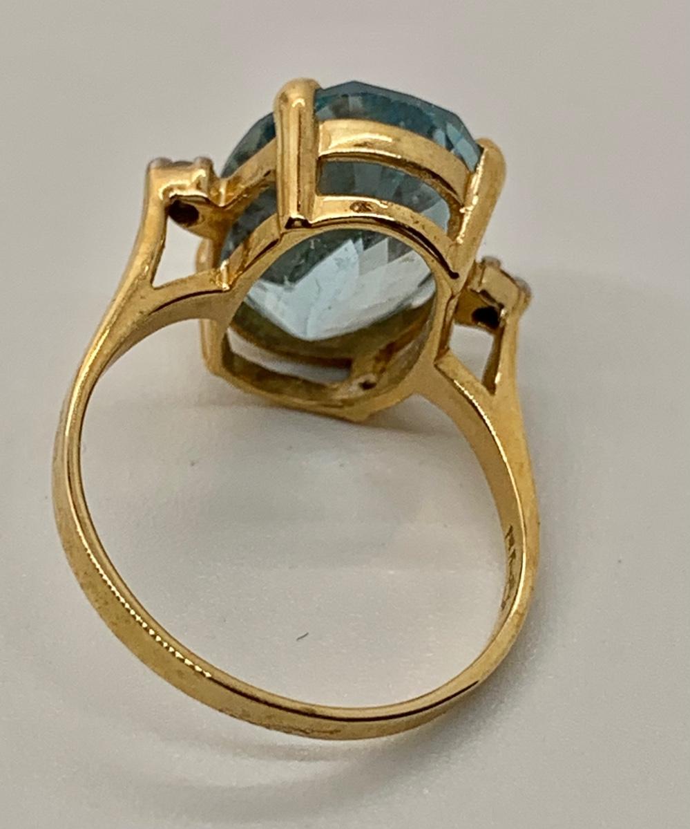 120: 3.8g 14K Yellow Gold Ring Blue Topaz & Diamonds