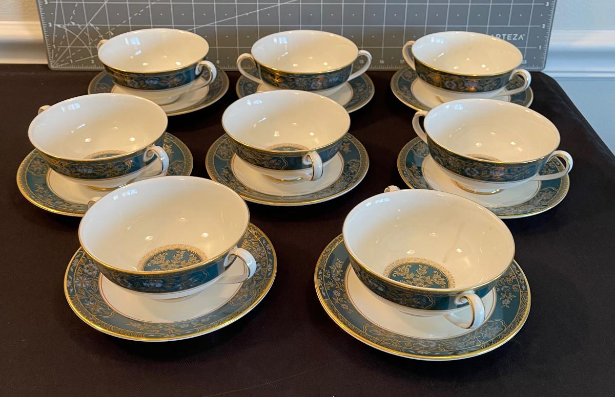#120 8-Royal Doulton "CARLYLE" Cream Soup Bowls w/Saucers