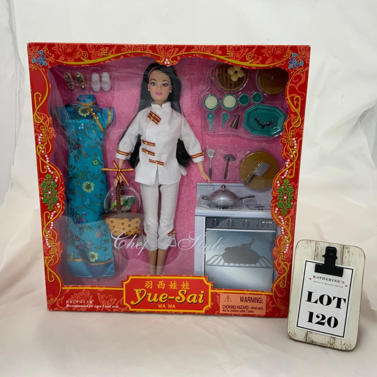 Chef-N-Style Yue-Sai Wa Wa Doll, produced in 2002. Yue-Sai is a Chinese American who, in addition to being a television personality and best-selling author was appointed by UNICEF as an Ambassador for Children. She created these dolls for other Chinese-Americans to connect to - so that they could see themselves on the shelves of stores like all the other girls. Doll is new, in Box. Please see photos for details and condition. !!! Proceeds from this auction will be donated to the NEW COMMUNITY SHELTER in Green Bay, Wisconsin. Please see Sale Description to the Left for more information. !!! ::: Shipping is available on this lot. If you require shipping you must let us know at the close of the auction. We will coordinate with you after the item has been won. Shipping fees will include insurance up to or exceeding the value of all items being mailed. If you have any questions regarding this lot please contact the auctioneer either via this website, by direct email or by phone. PICK UP TIMES and other important information can be found in the TERMS and DESCRIPTION of the auction. Please take a look for pertinent information. Thanks!