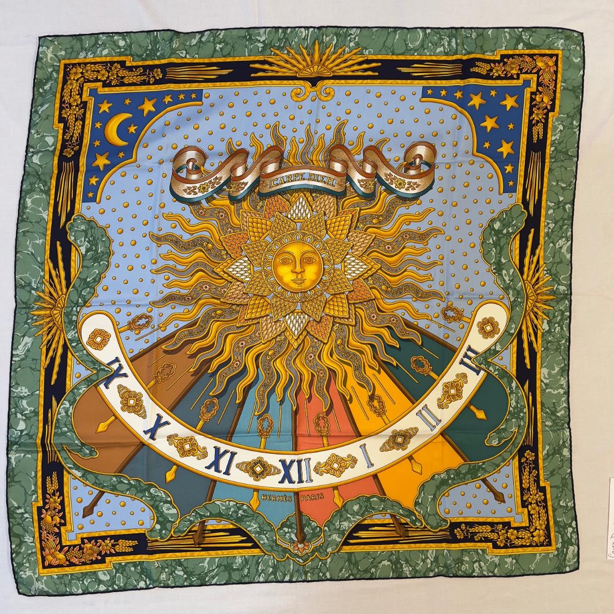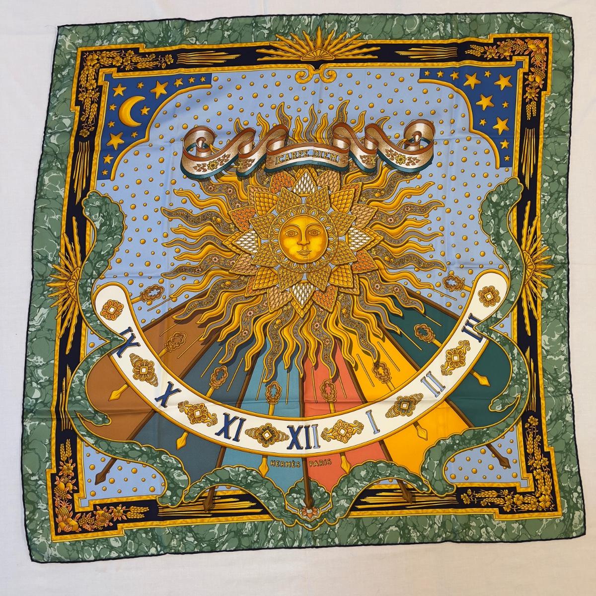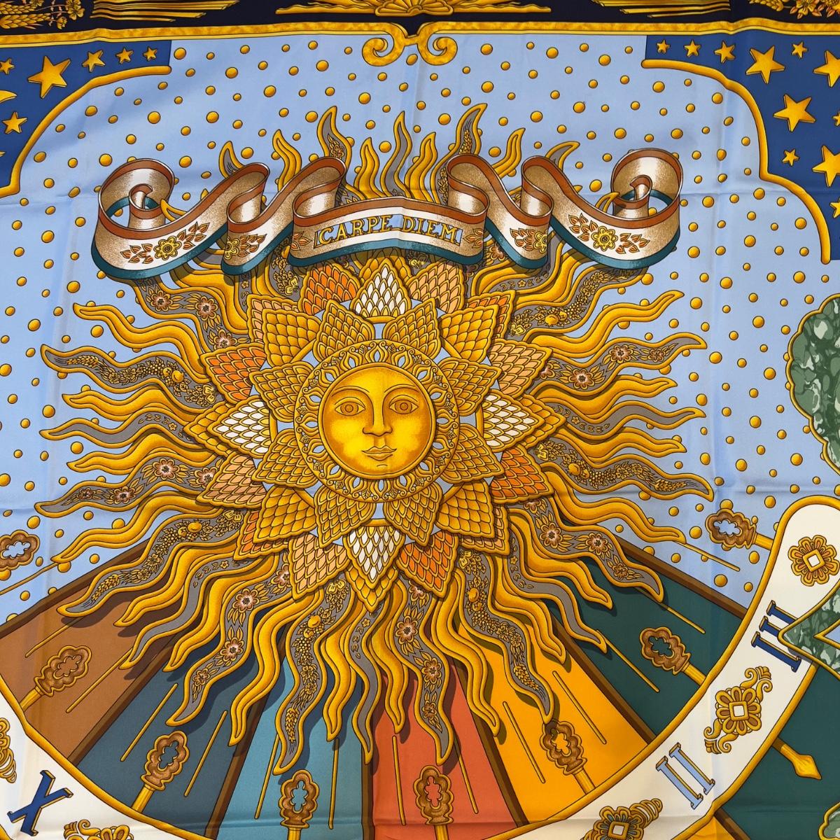 120 Authentic HERMÉS Carre 90 Silk Scarf Carpe Diem by Joachim Metz 1994