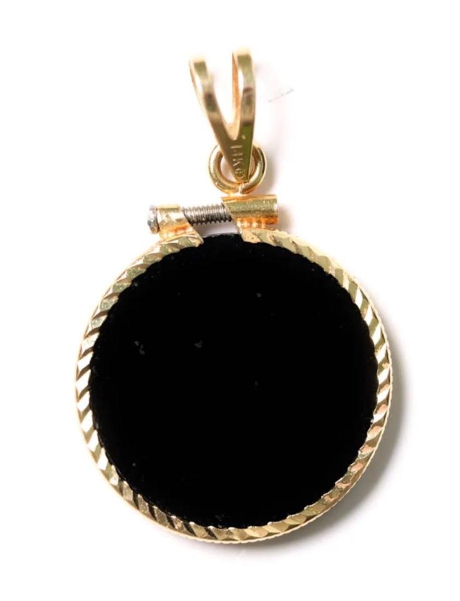 1/20 oz .9999 Fine Gold 5 Yuan Panda Gold Coin pendant. Approx. overall weight .014 ounces. The measurements of the coin, excluding the bail for hanging is 20.23mm or 0.80 inches.