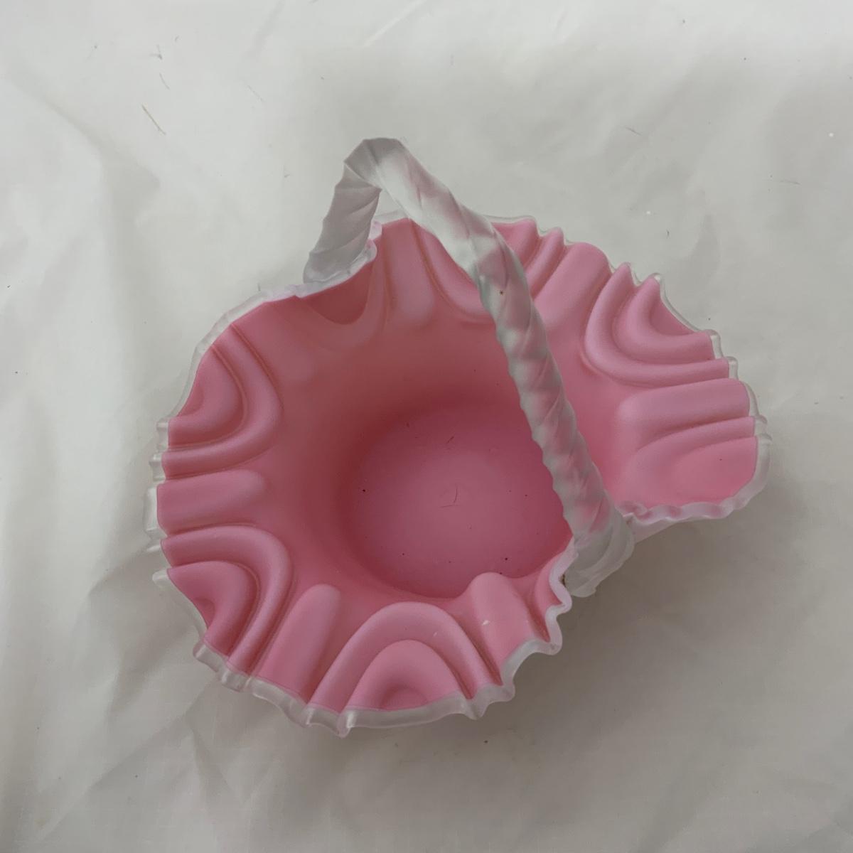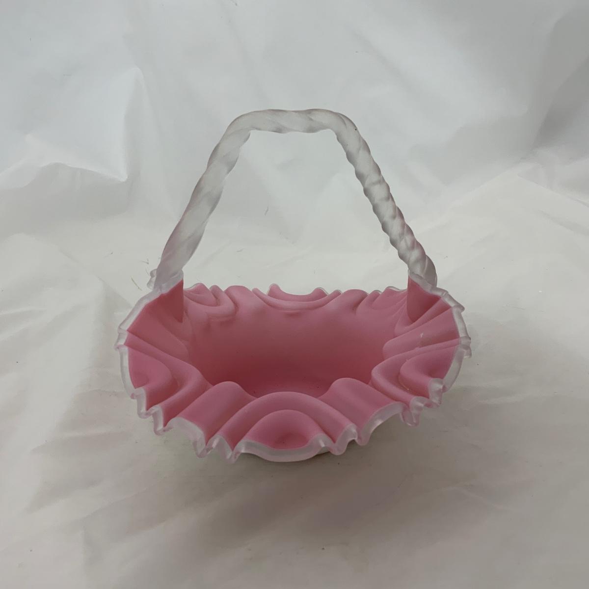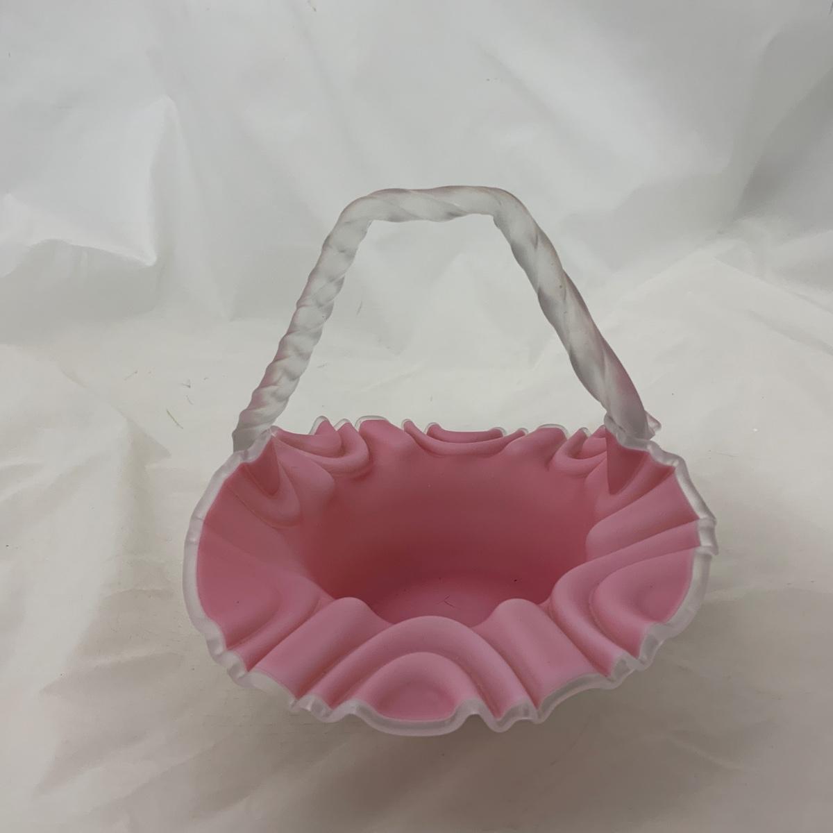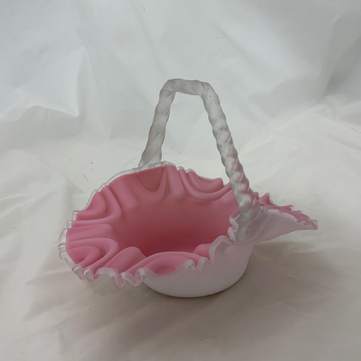 Beautiful Pink Satin Glass Basket with an elegant twisted handle. I love the design on the basket, it makes it look like it was crafted out of fabric. It’s really beautiful and unique. Please see photos for details and condition. ::: Shipping is available on this lot. If you require shipping you must let us know at the close of the auction. We will coordinate with you after the item has been won. Shipping fees will include insurance up to or exceeding the value of all items being mailed. If you have any questions regarding this lot please contact the auctioneer either via this website, by direct email or by phone. PICK UP TIMES and other important information can be found in the TERMS and DESCRIPTION of the auction. Please take a look for pertinent information. Thanks!