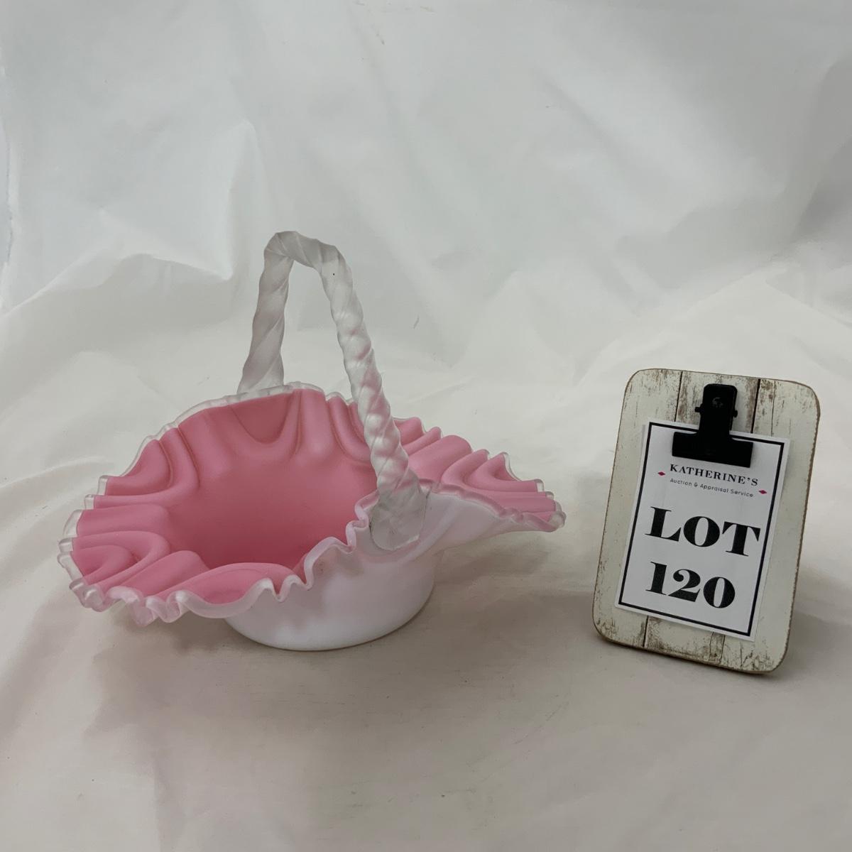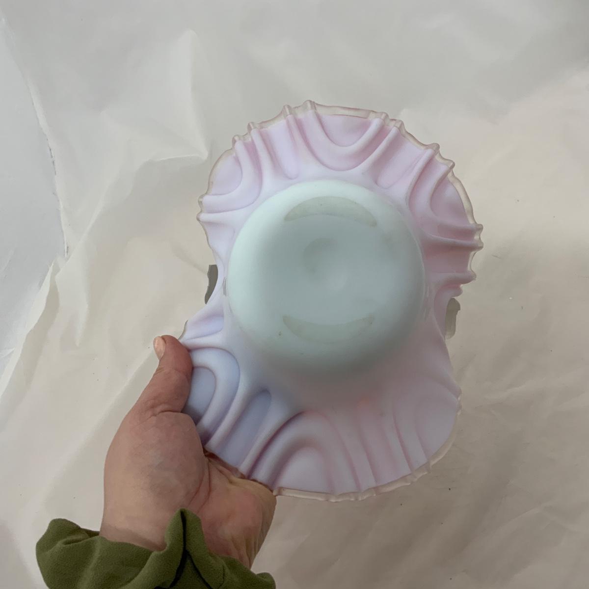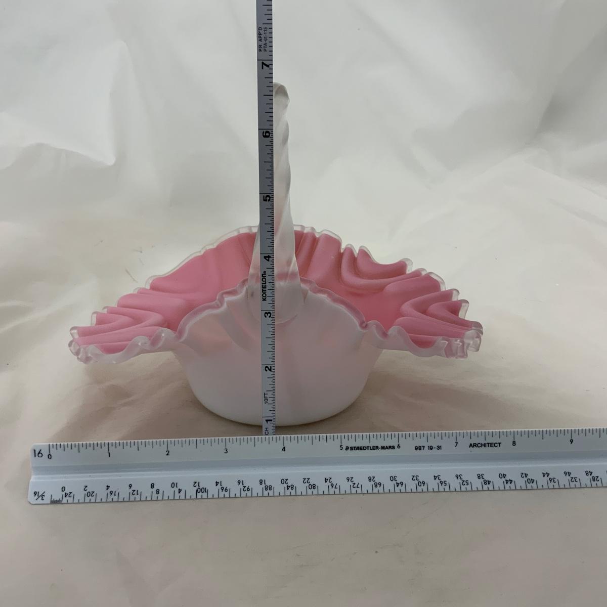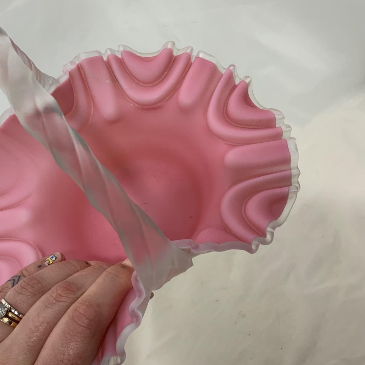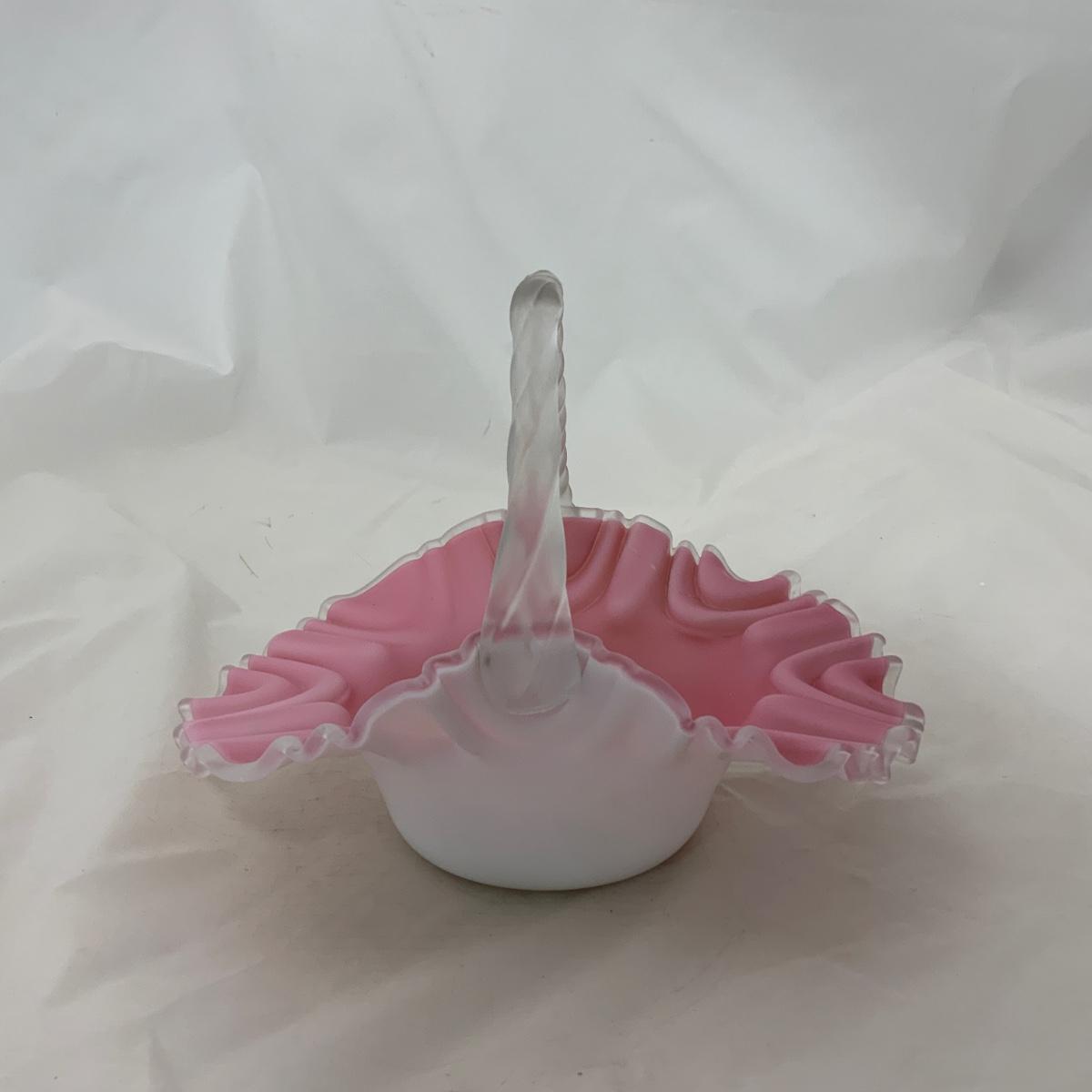 Beautiful Pink Satin Glass Basket with an elegant twisted handle. I love the design on the basket, it makes it look like it was crafted out of fabric. It’s really beautiful and unique. Please see photos for details and condition. ::: Shipping is available on this lot. If you require shipping you must let us know at the close of the auction. We will coordinate with you after the item has been won. Shipping fees will include insurance up to or exceeding the value of all items being mailed. If you have any questions regarding this lot please contact the auctioneer either via this website, by direct email or by phone. PICK UP TIMES and other important information can be found in the TERMS and DESCRIPTION of the auction. Please take a look for pertinent information. Thanks!