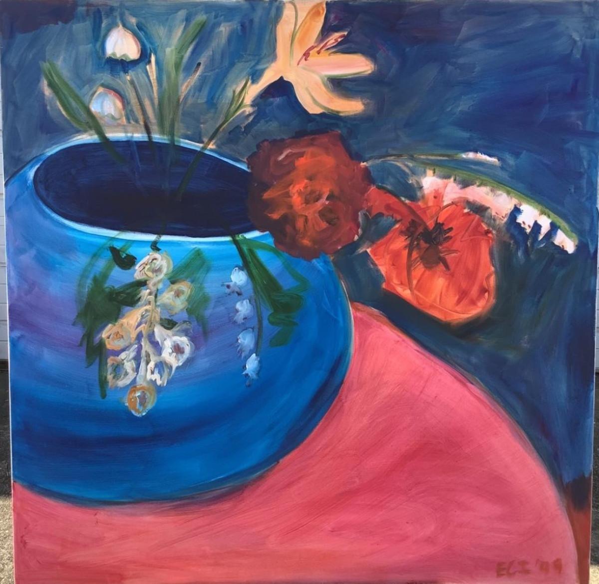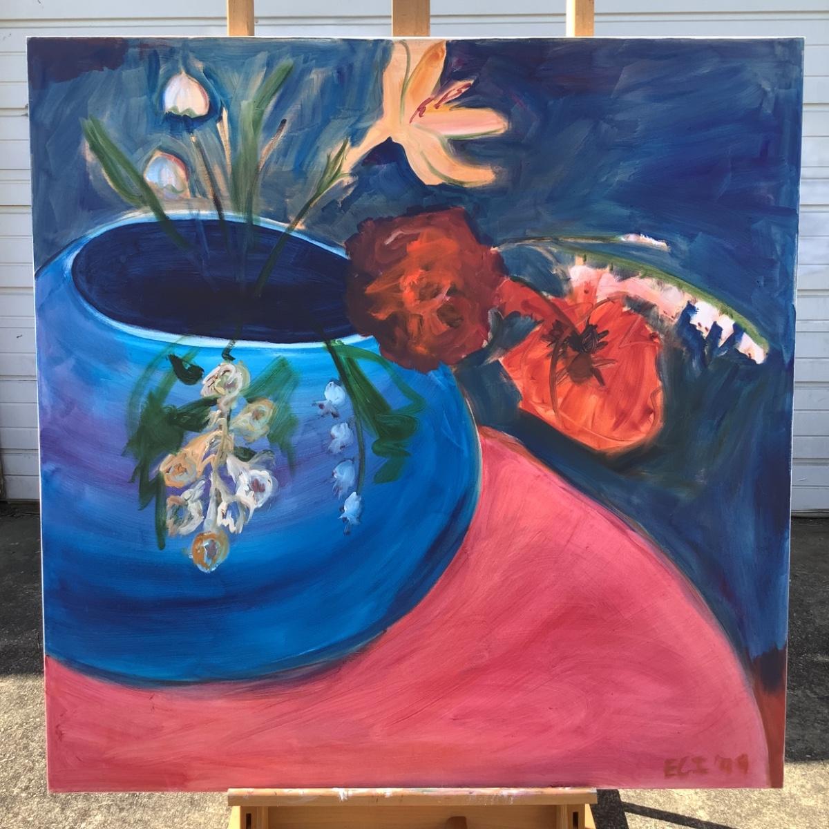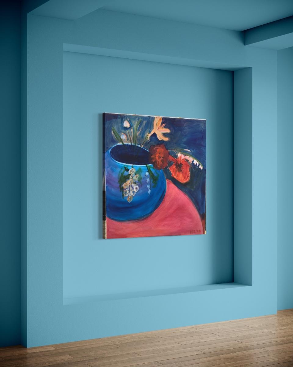 120 Poppies in Blue Vase Oil on Canvas by Ellen Into
