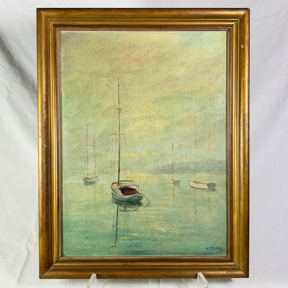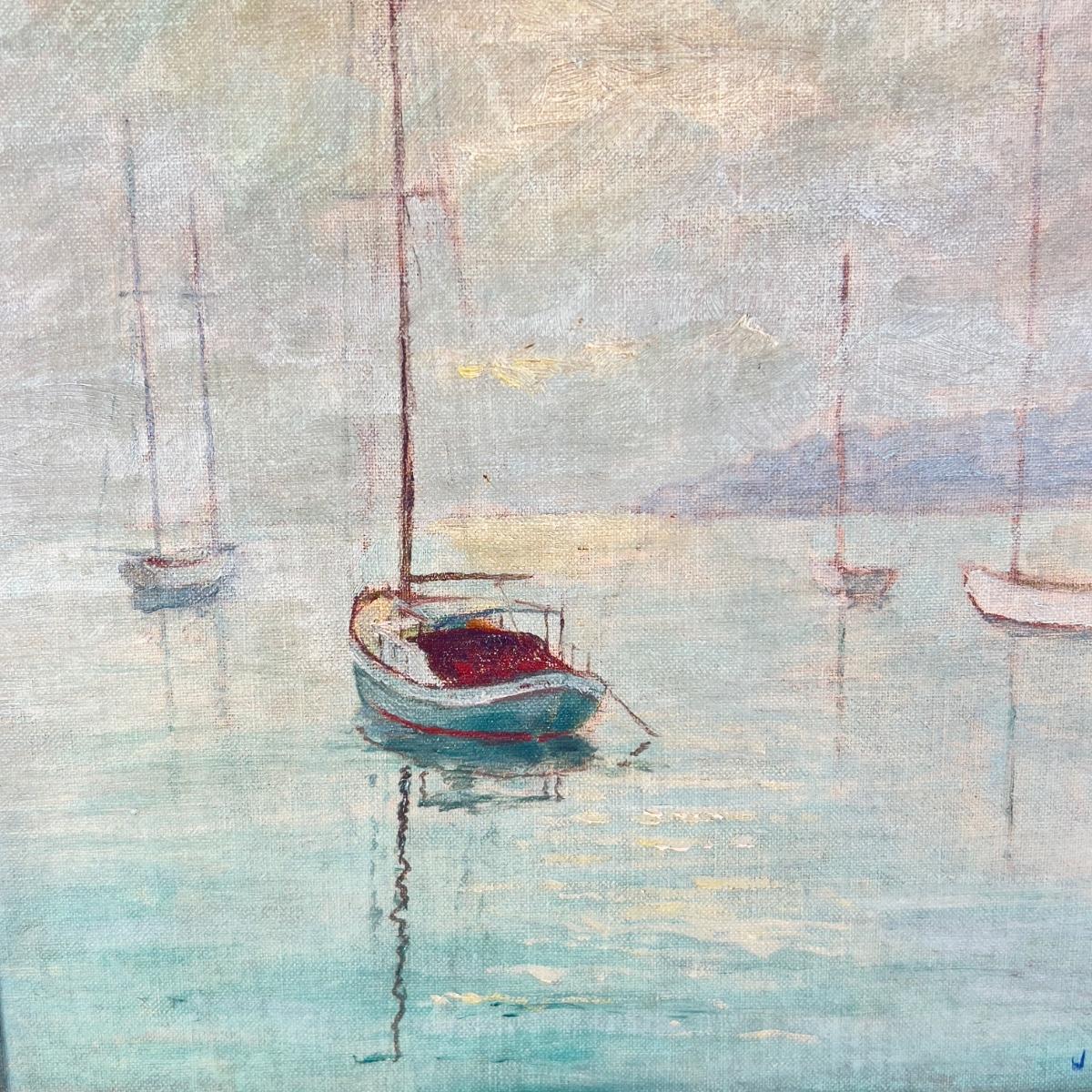 1200 Original Oil Painting on Board of Sailboat on Water Scene.
