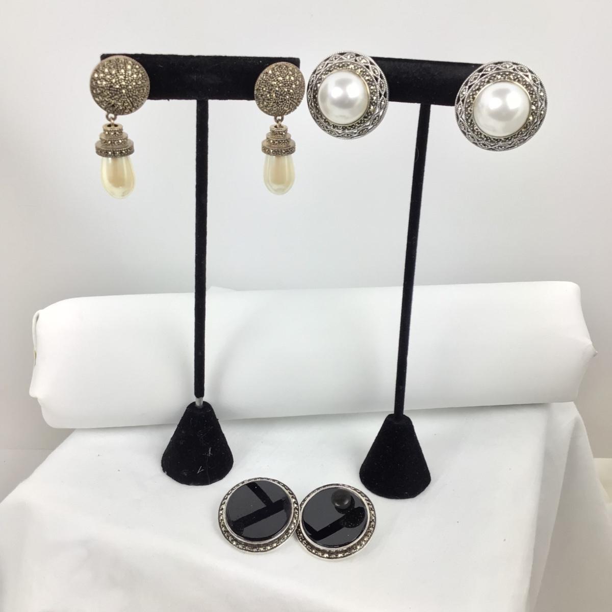 Two Pairs of Pierced Marcasite / Pearl Judith Jack Earrings