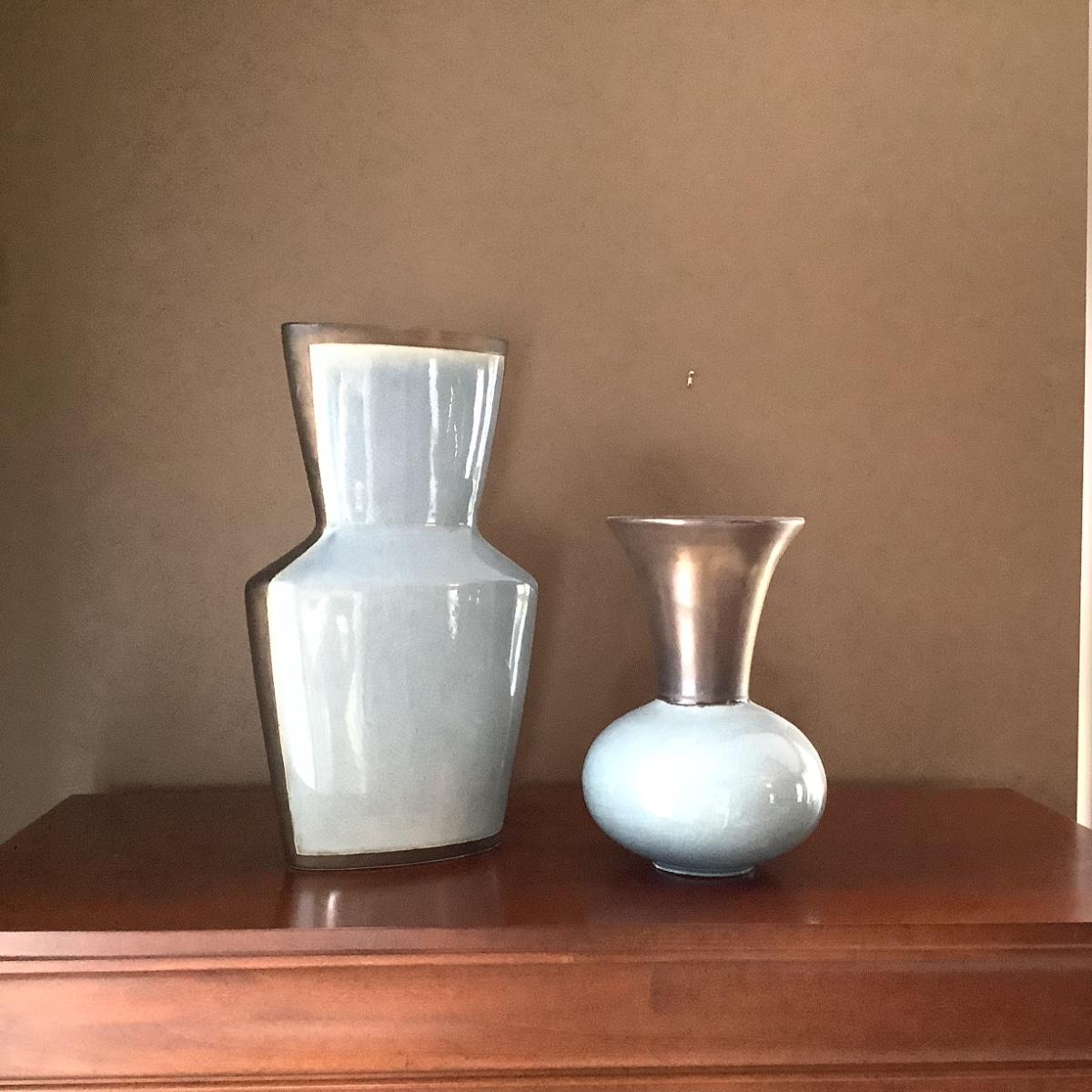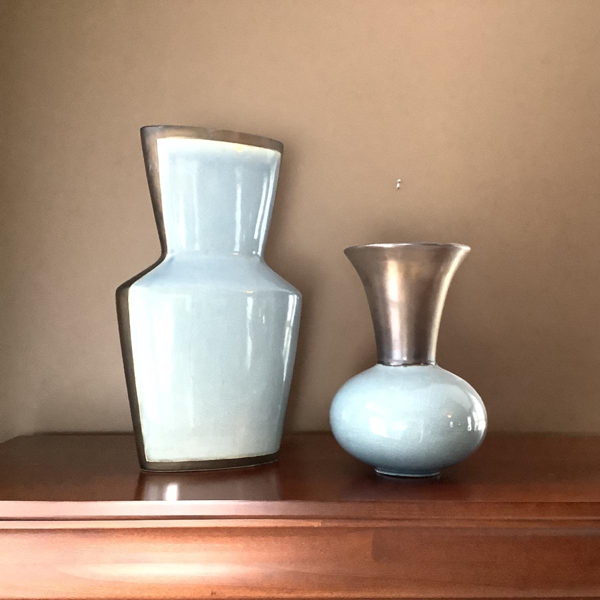 1200 Two Pale Blue Silver Tone Ceramic Vases