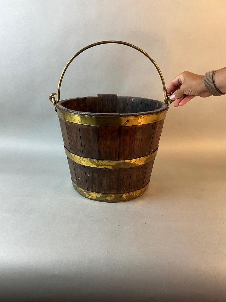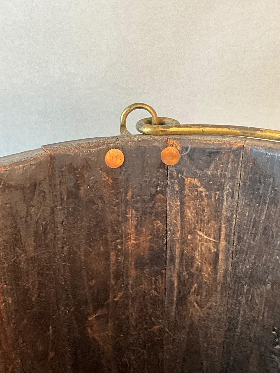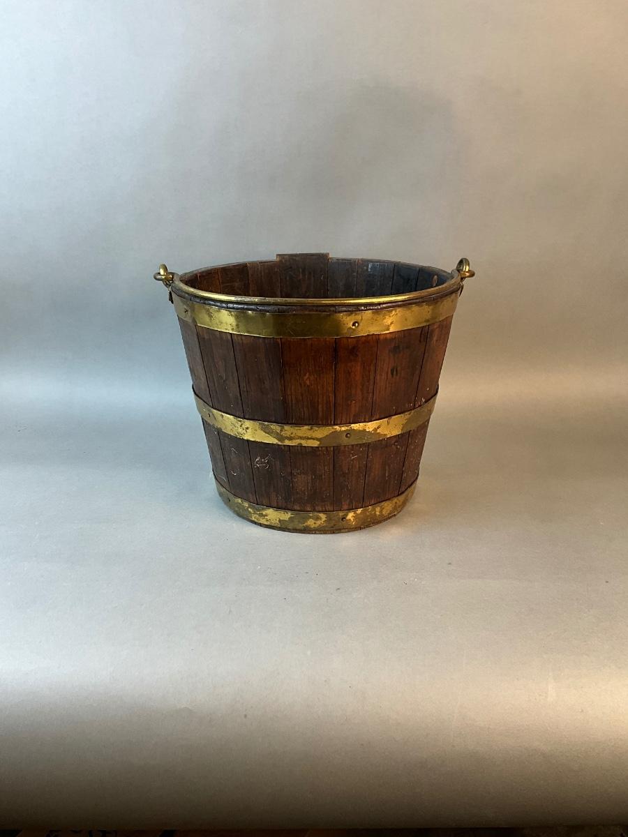 1201 Antique George III Brass Bound Oak Peat Bucket, Late 18th Century