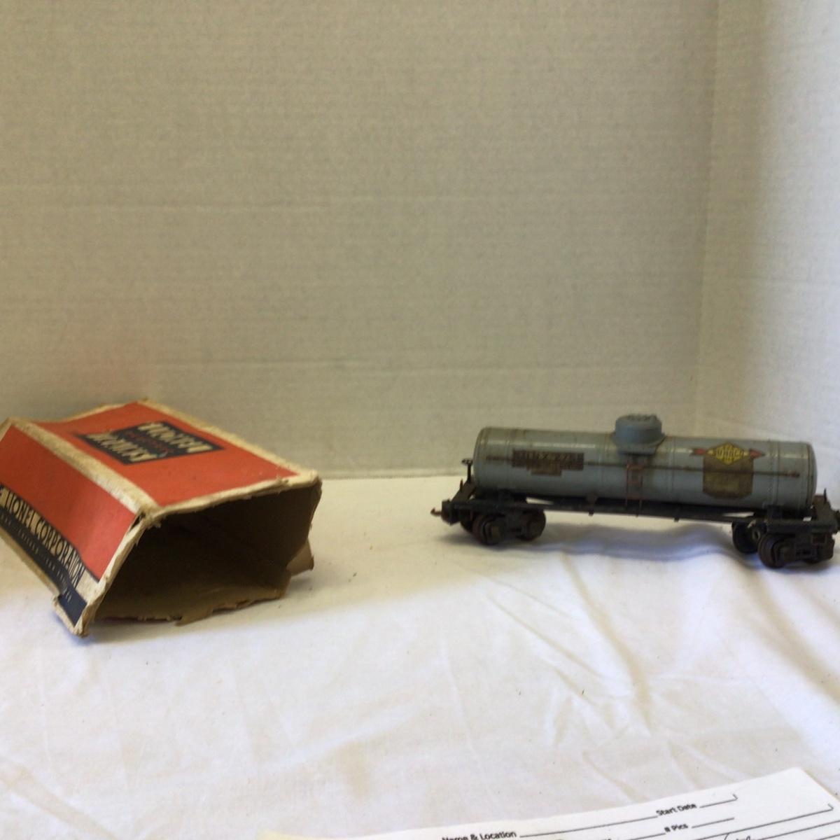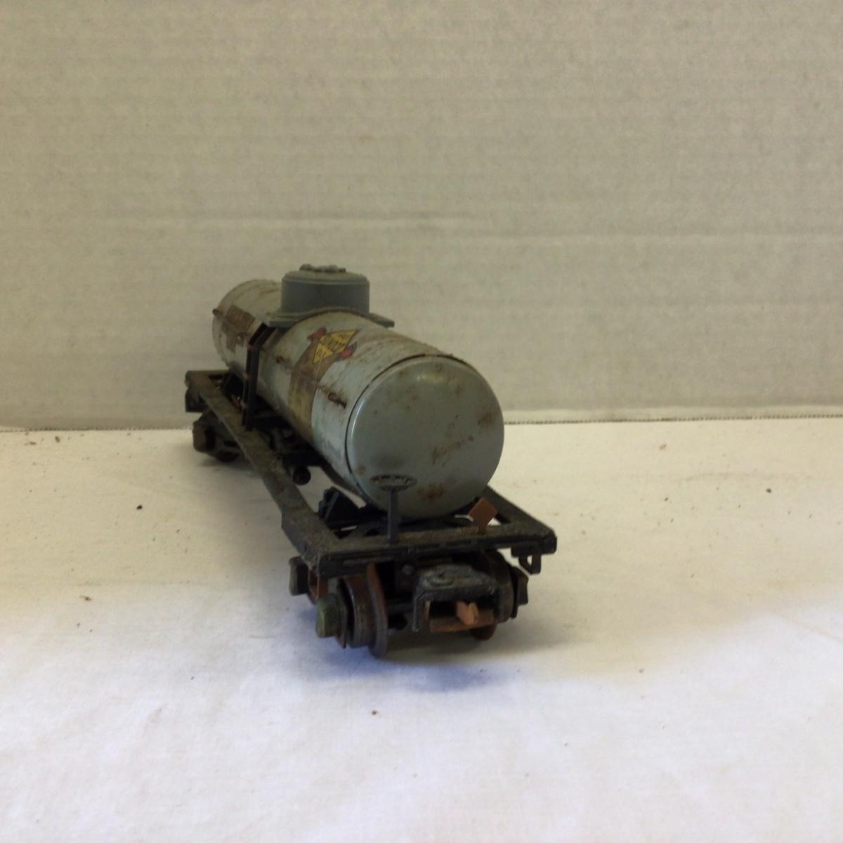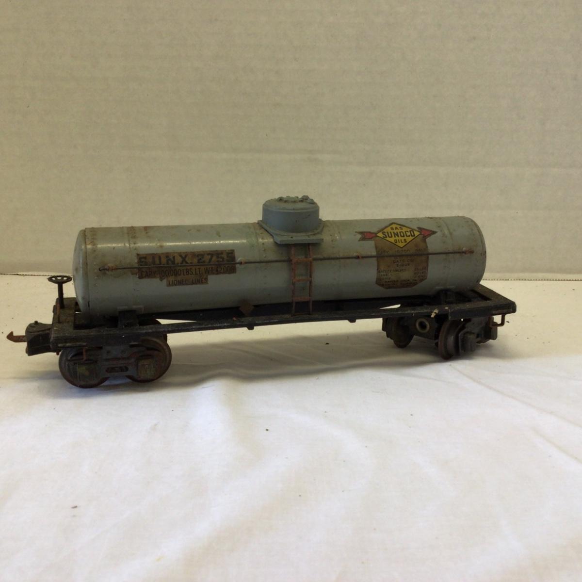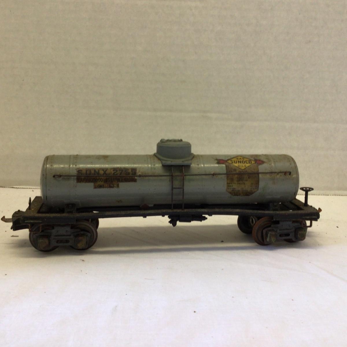 Vintage Lionel Model 2755 Sunoco Tank Car-Gray. Slight surface rust on some areas. No parts appear to be missing.