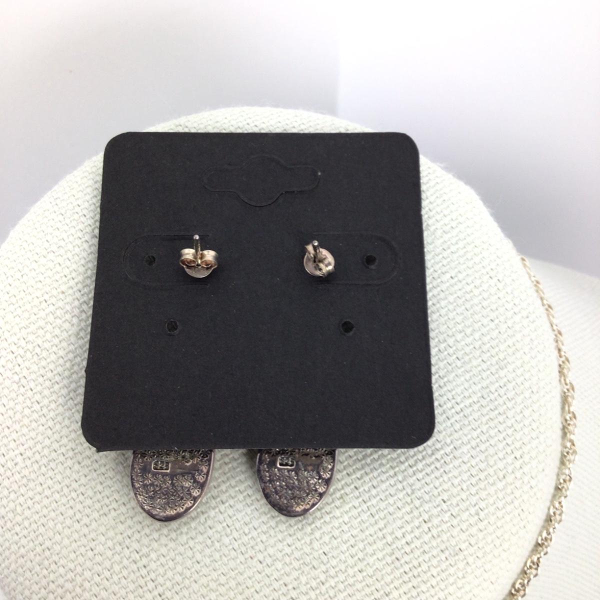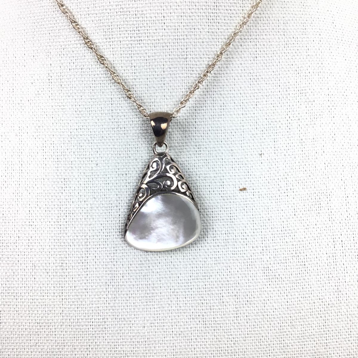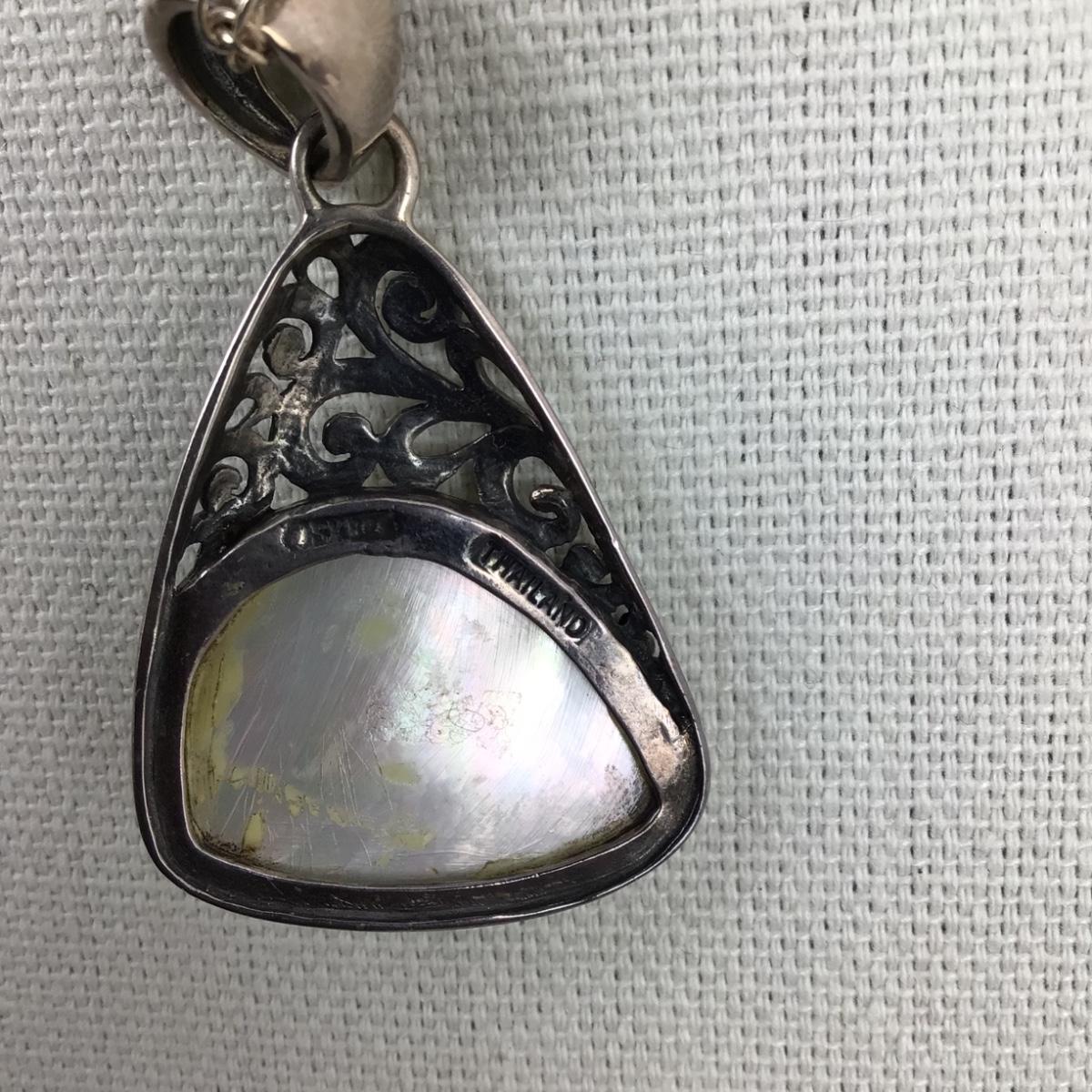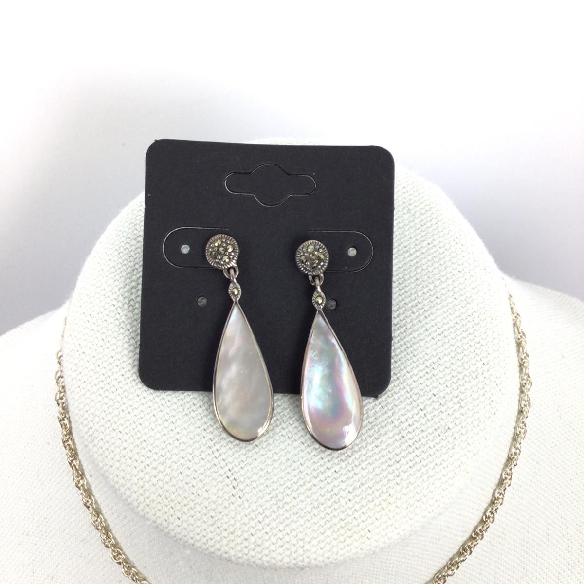 Thailand Silver MOP Pendant measuring 16” and pierced matching earrings measuring 1.5” long
